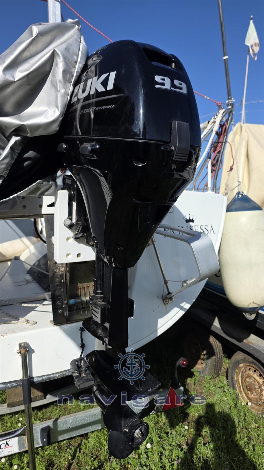 Sondeur pêche (fishfinder), GPS (GPS Grafico Garmin, con profondimetro), Pilote automatique (Simrad TP10).