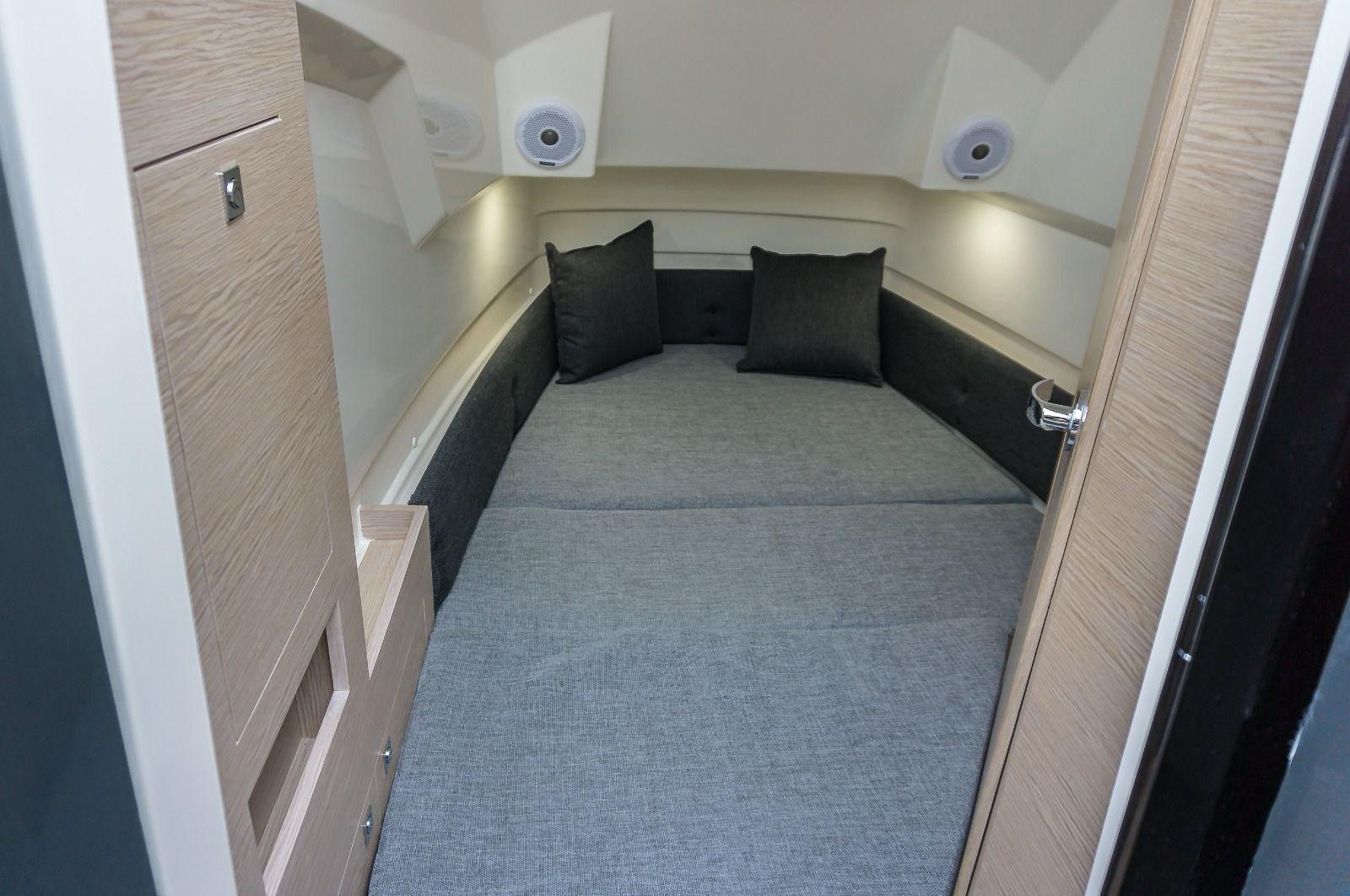 Console haut de gamme avec un équipement complet de cabine avec mobilier, mobilier et coussins