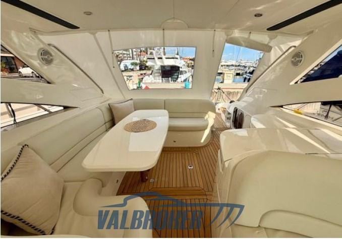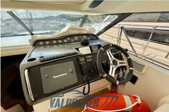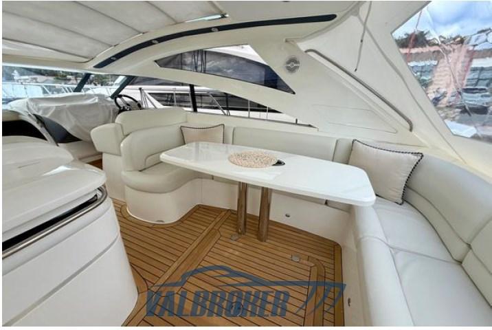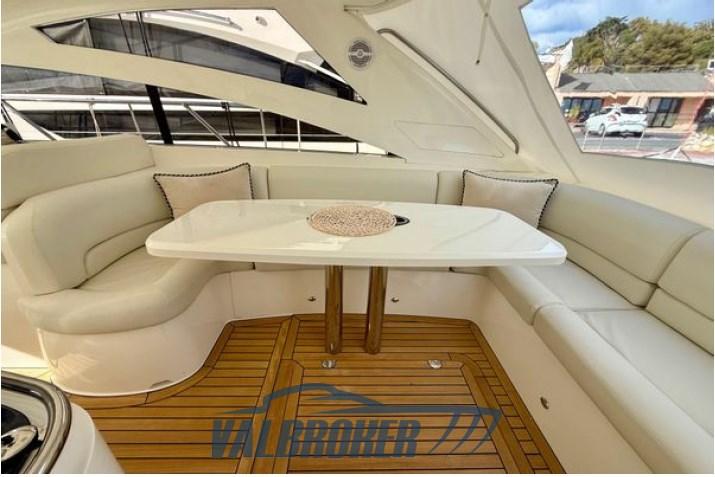 Eau sous pression, Douche de cockpit, Propulseur d'étrave (Side Power), Phare de poursuite (Jabsco), Flaps hydrauliques, Garage à annexe, Hard top (Soft top apribile con comando elettrico), Lavabo dans le cockpit, Passerelle (idraulica telescopica Besenzoni), Plateforme arrière (teak), Pompe de cale manuelle, Cockpit en teck, Guindeau électrique, Echelle de bain, table de cockpit, Table pliante de salon.