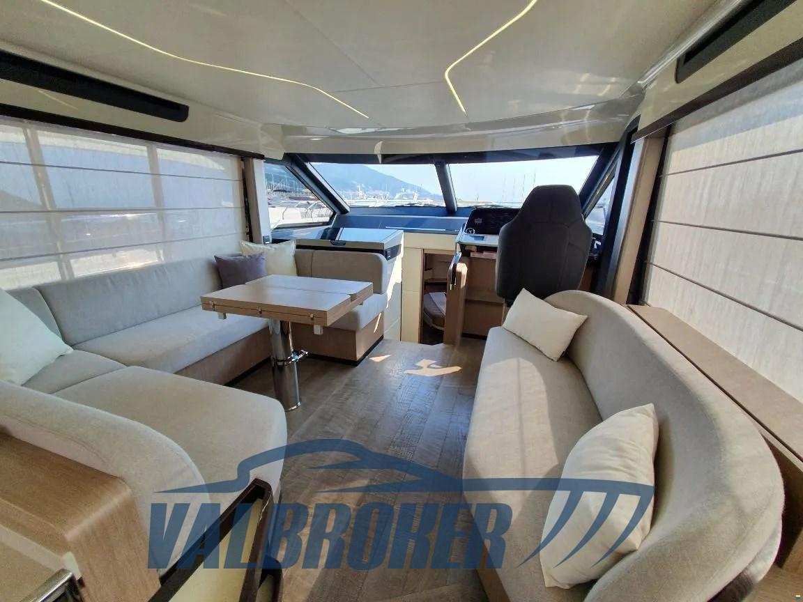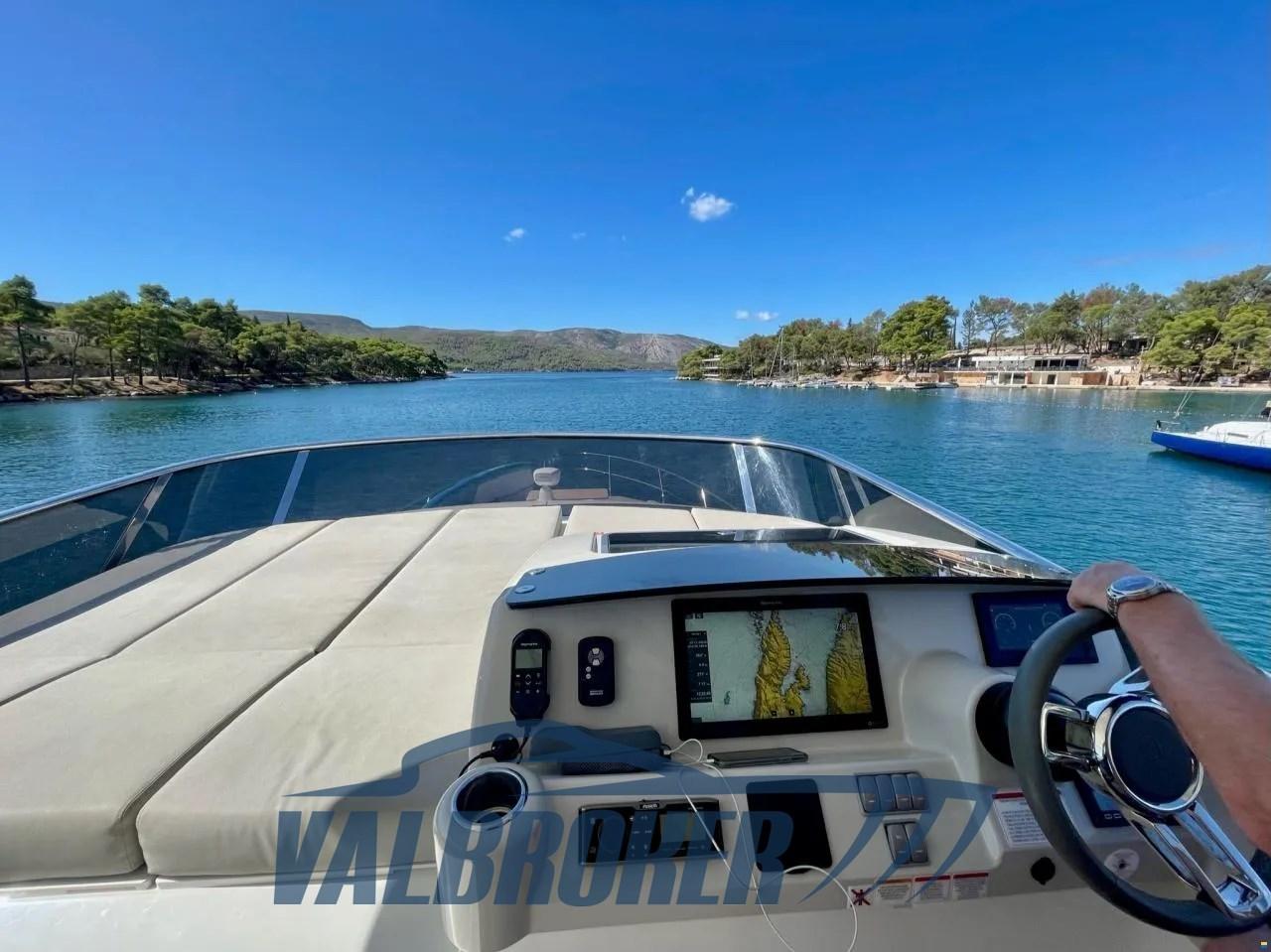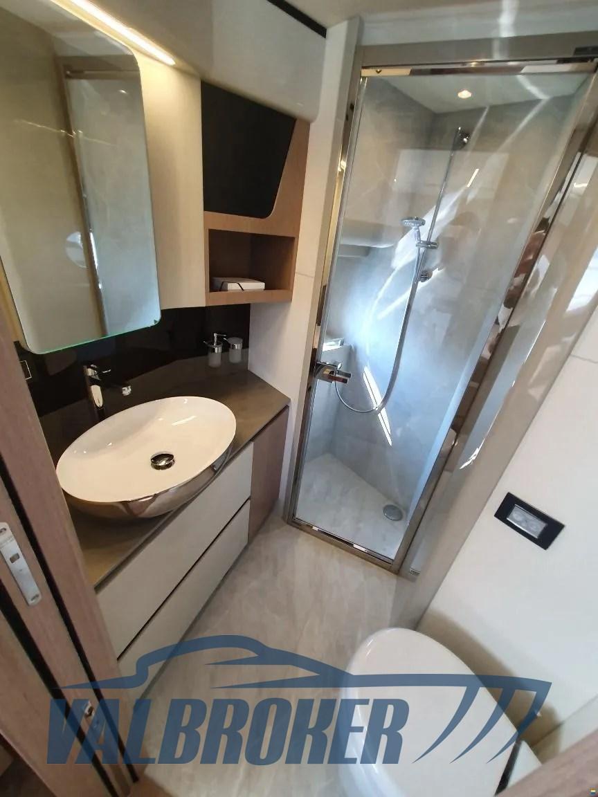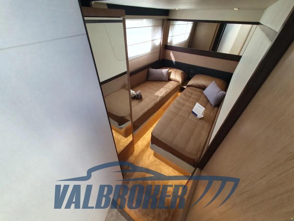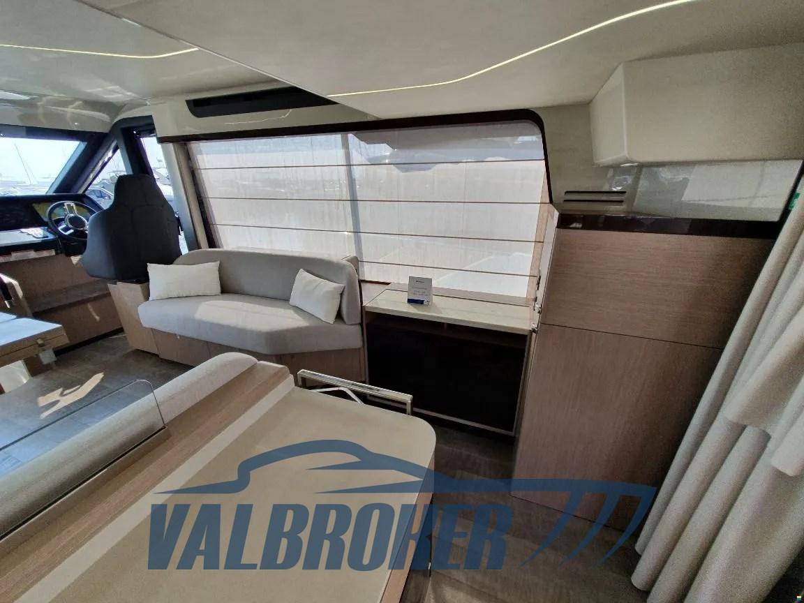 Flybridge du chantier naval italien Absolute Yachts, conçu pour maximiser l’espace et la luminosité. Propulsé par un Volvo Penta D6-IPS650 de 2x480 CV. Il dispose de 3 cabines : la cabine principale à l’avant, une cabine VIP au centre du navire et une chambre simple avec 2 salles de bains.