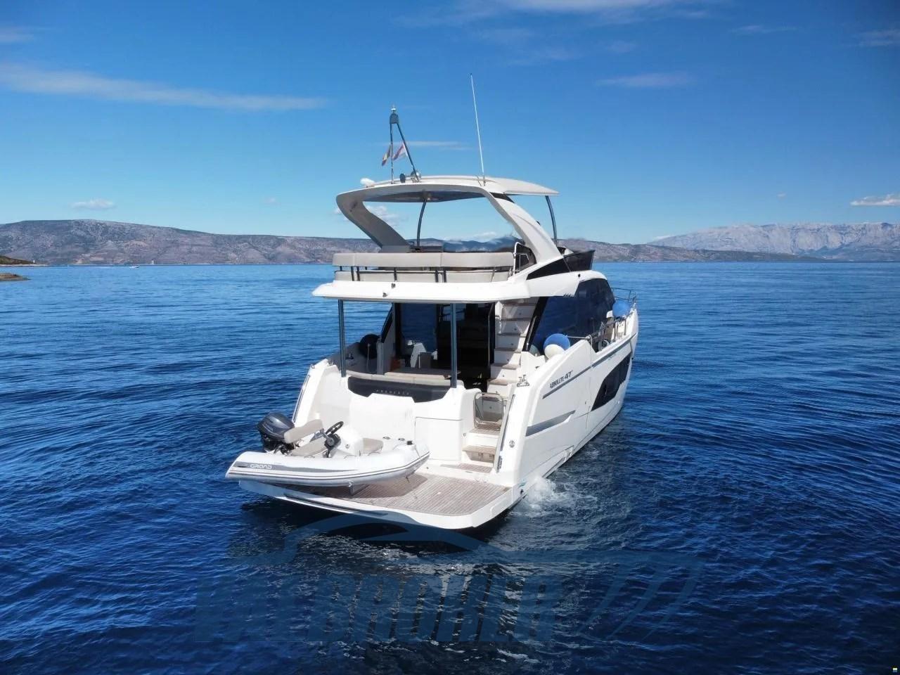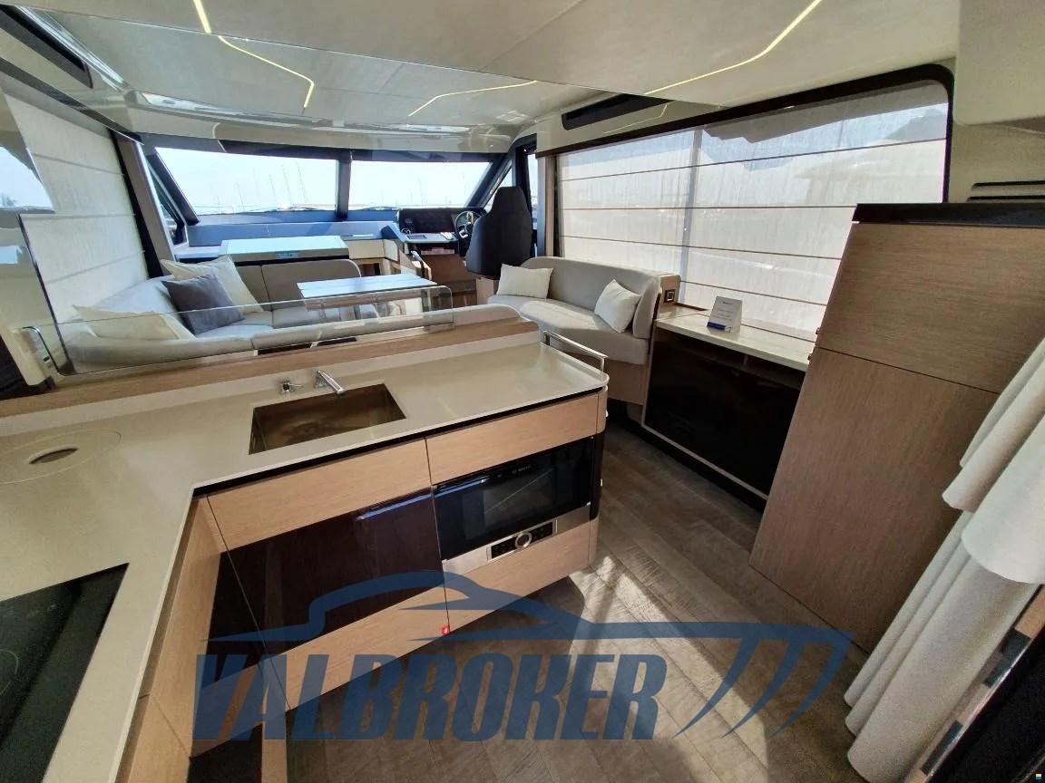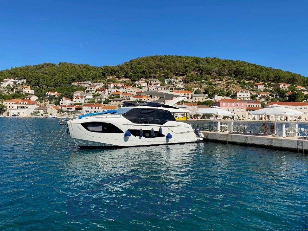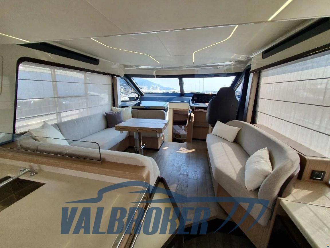 Flybridge du chantier naval italien Absolute Yachts, conçu pour maximiser l’espace et la luminosité. Propulsé par un Volvo Penta D6-IPS650 de 2x480 CV. Il dispose de 3 cabines : la cabine principale à l’avant, une cabine VIP au centre du navire et une chambre simple avec 2 salles de bains.