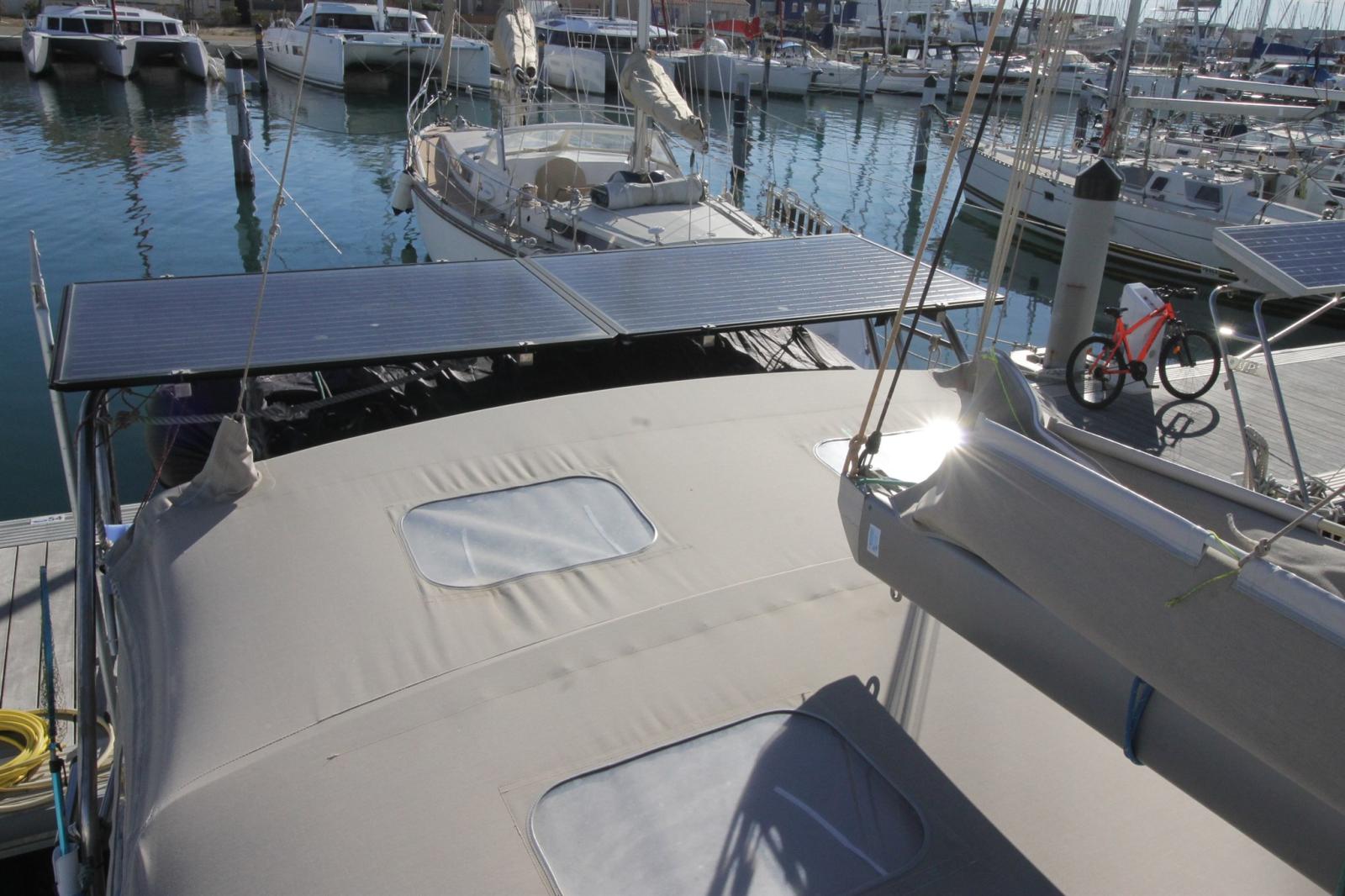 Ancre (charrue), Eau sous pression, 2 Batteries (x110ah de 2025)), Douche de cockpit, Double barre à roue, Bossoirs pour annexe (portique (sur-mesure) avec arceau basculant), Moteur d'annexe (yamaha 4cv 4t), 2 Panneau solaire (x250w), Pompe de cale manuelle, Guindeau électrique (1000w chaine de 10), Echelle de bain, Chaise support HB, table de cockpit (escamotable), 2 Annexe (semi-rigide 2,90m + semi lattée 2,40m), 6 Winch (self tailing), Winch électrique ((manivelle electrique E-Wincher (pack premium)), Windex.