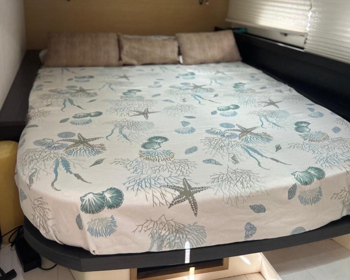 Deux cabines d’accueil avec lits doubles symétriques situées sous le plancher du cockpit
