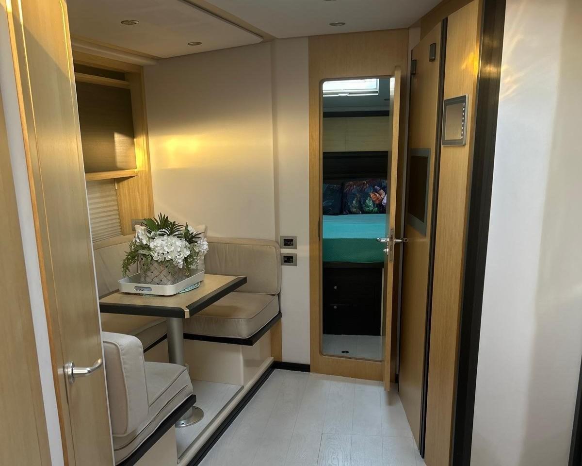 Cockpit décapotable : Le pont peut être surélevé pour devenir un grand terrasse ou une table à manger pouvant accueillir jusqu’à 12 personnes.