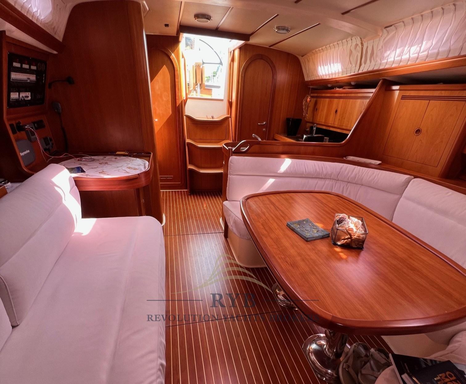 Ancre (DELTA 20 KG + 65 m. di catena, diam.8), Chargeur de batterie (45aH), Douche de cockpit, Propulseur d'étrave (RMC - RETRATTILE), Éclairage de courtoisie, Plateforme arrière, Cockpit en teck, Guindeau électrique (1400W + Pulsantiera con contametri e strumento ripetitore comando in pozzetto), Gréement monotoron, Echelle de bain, table de cockpit (PIEGHEVOLE E ASPORTABILE), Winch, 3 Winch électrique (HARKEN), Windex.