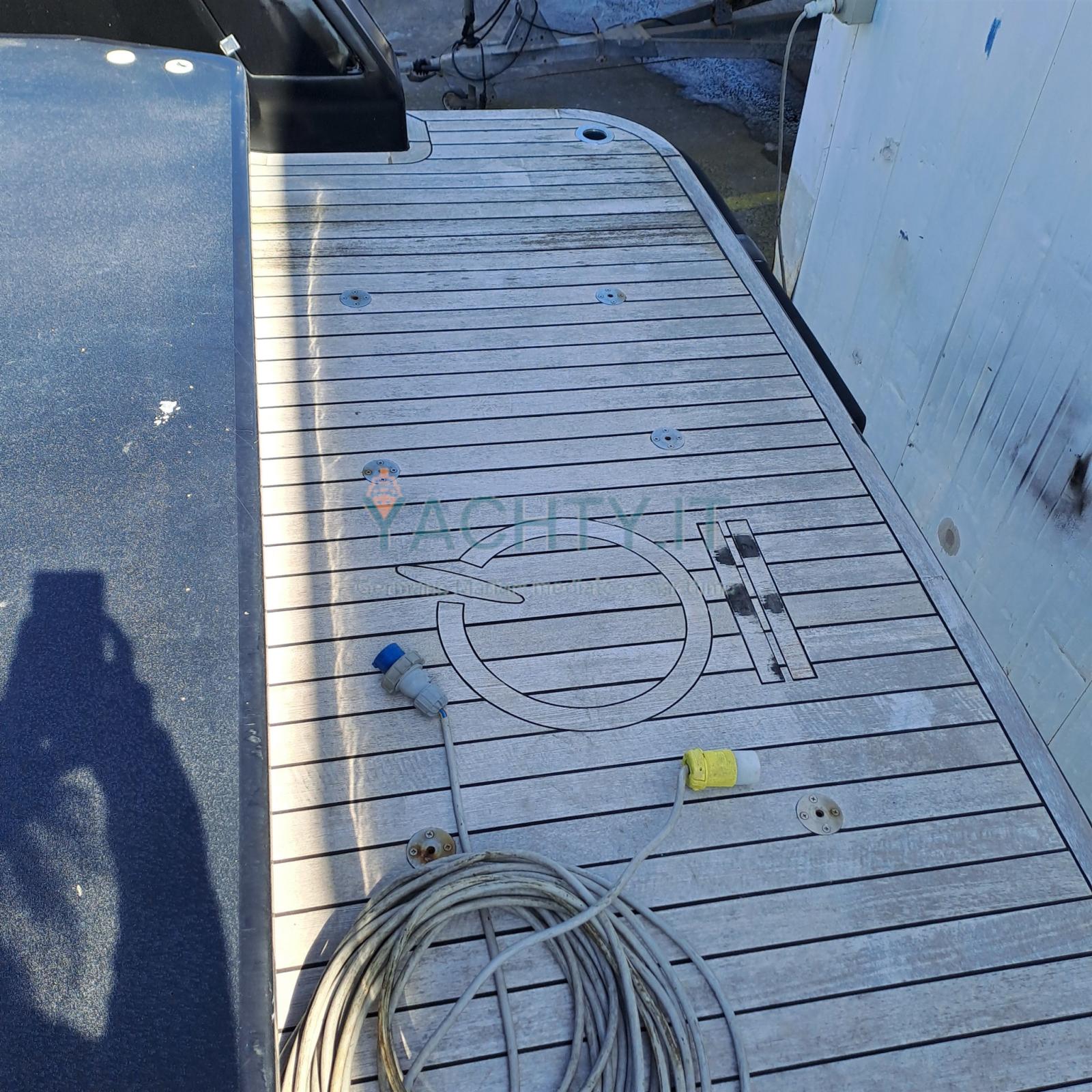 T-top avec fenêtres panoramiques, terrasse et plateforme en teck ! Actuellement sur terre pour un stockage hivernal