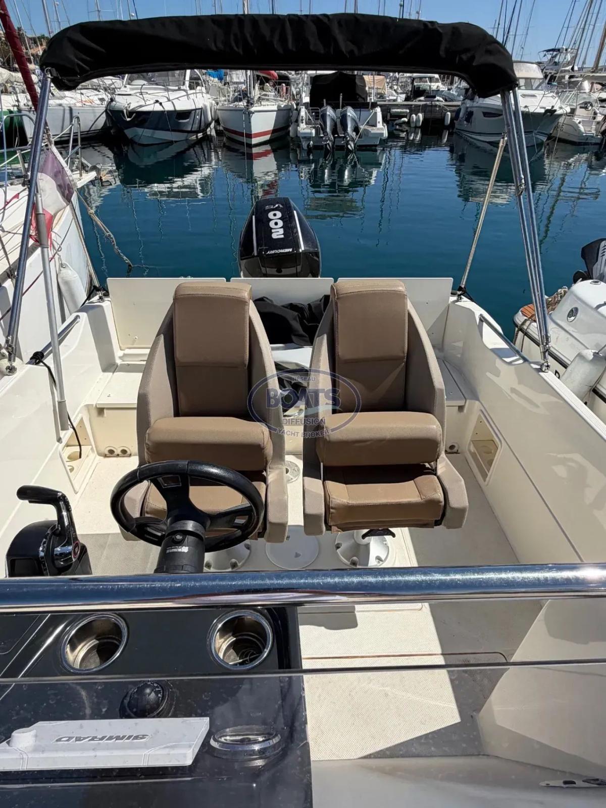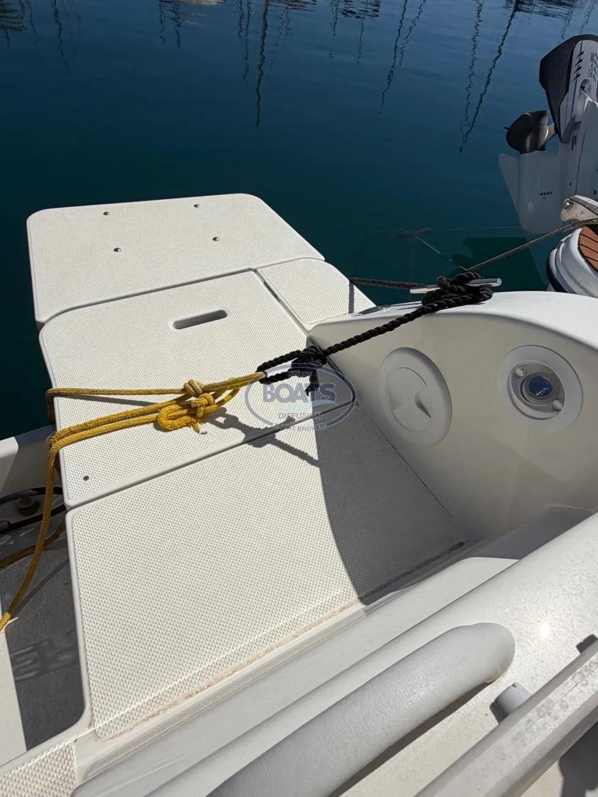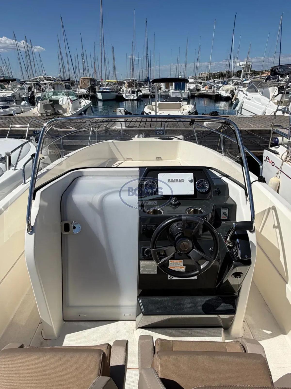 Grand espace autour du poste de pilotage, coussin banquette arrière, 2 siéges avec bolster, bain de soleil avant, équipé d 'une cabine, coffre à l 'avant et à l 'arrière.