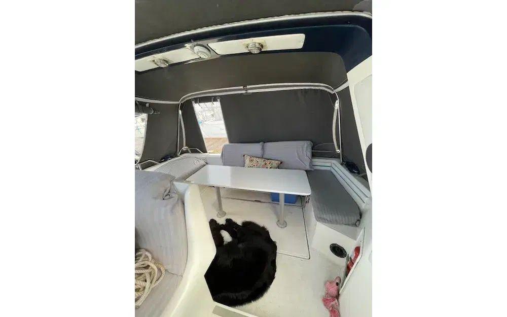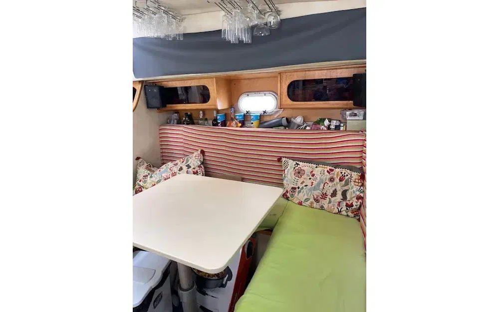 Avec ses 2 cabines, 4 couchages et 1 salle de bain, ce bateau est conçu pour accueillir jusqu’à 10 personnes en journée. De quoi inviter tout votre fan club à bord ! Vous disposez aussi d’une kitchenette équipée (cuisinière, évier, réfrigérateur, micro-ondes, rideaux complets), parfait pour préparer vos festins en mer.