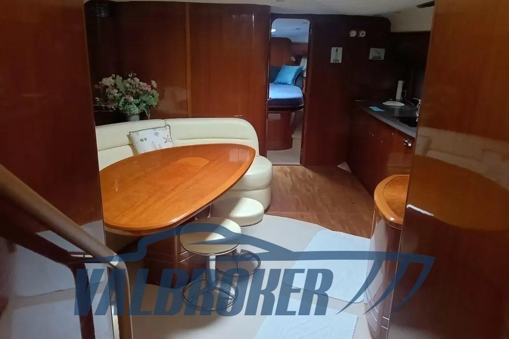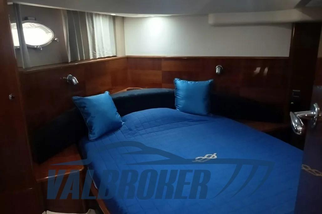 Toit électrique souple, grand cockpit habitable, bar humide, garage tender et plateforme en teck. EN OPTION : propulseur d’étrave, radar, pilote automatique, climatisation, générateur.