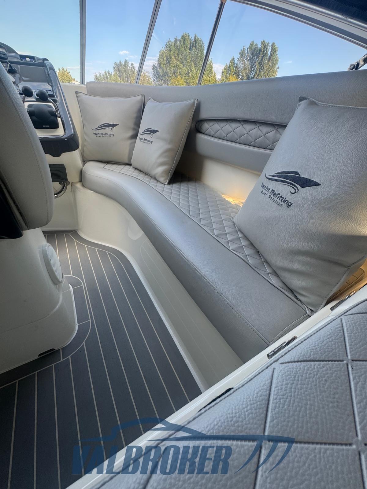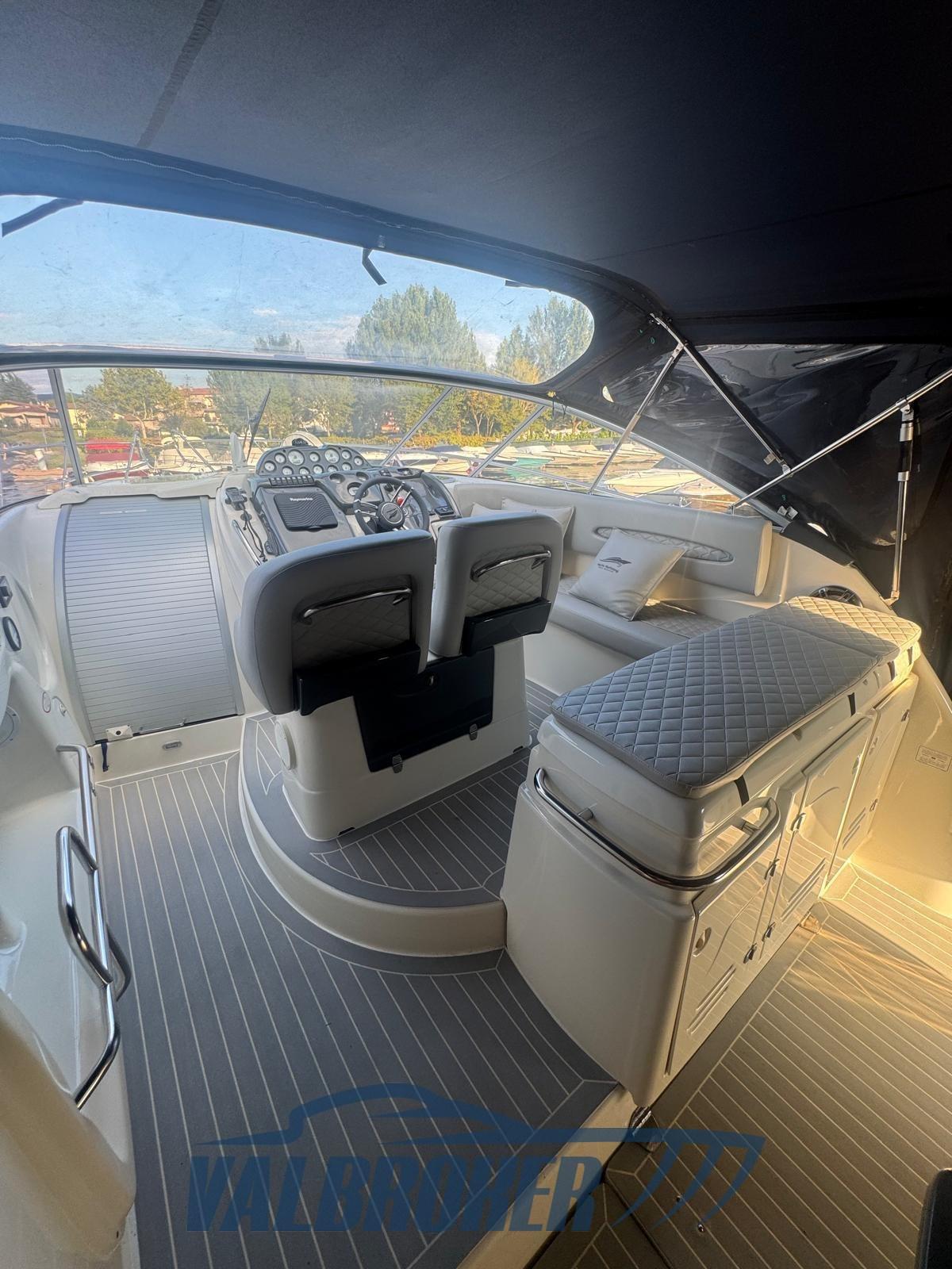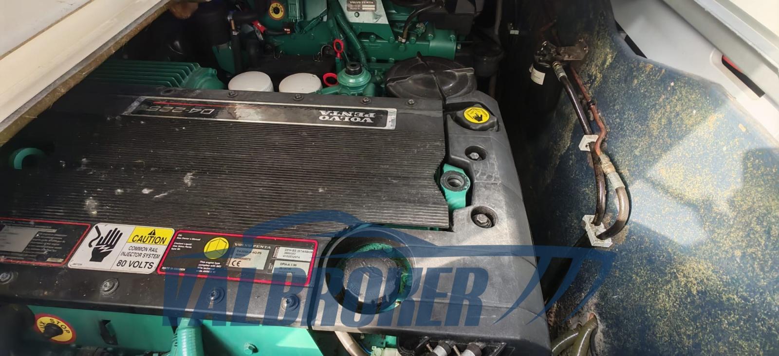 Bateau non immatriculé à vendre, utilisé toujours et uniquement dans le lac. Grands espaces de vie et faible consommation grâce au 2x Volvo Penta D4 turbodiesel 225 CV common rail, très peu d’heures de fonctionnement, seulement 228 en eau douce. Grand cockpit également utilisé pour la pêche. Sous le pont, salle à manger décapotable confortable avec lit français et double cabine au centre, salle de bain avec double accès. Climatisation, générateur, propulseur d’avant.