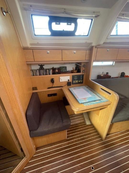 Ce voilier moderne et performant offre un excellent compromis entre confort en croisière et facilité de manœuvre, idéal pour un couple ou une petite famille.