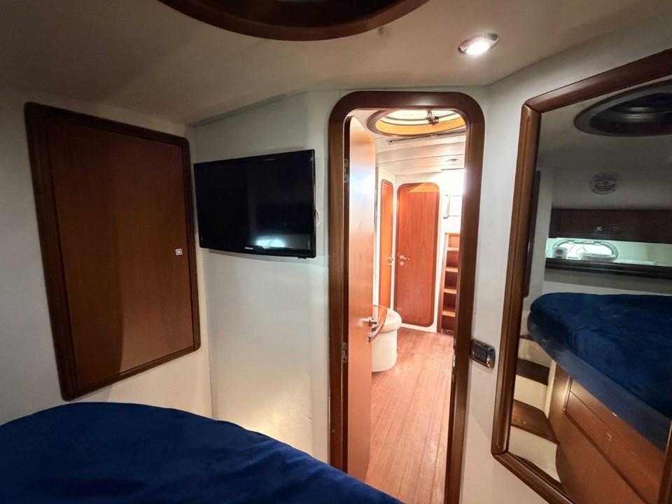 Le bateau est prêt à naviguer immédiatement. Selleries, boiseries, cockpit et aménagements intérieurs sont impeccables, reflet d’un usage soigneux et suivi.