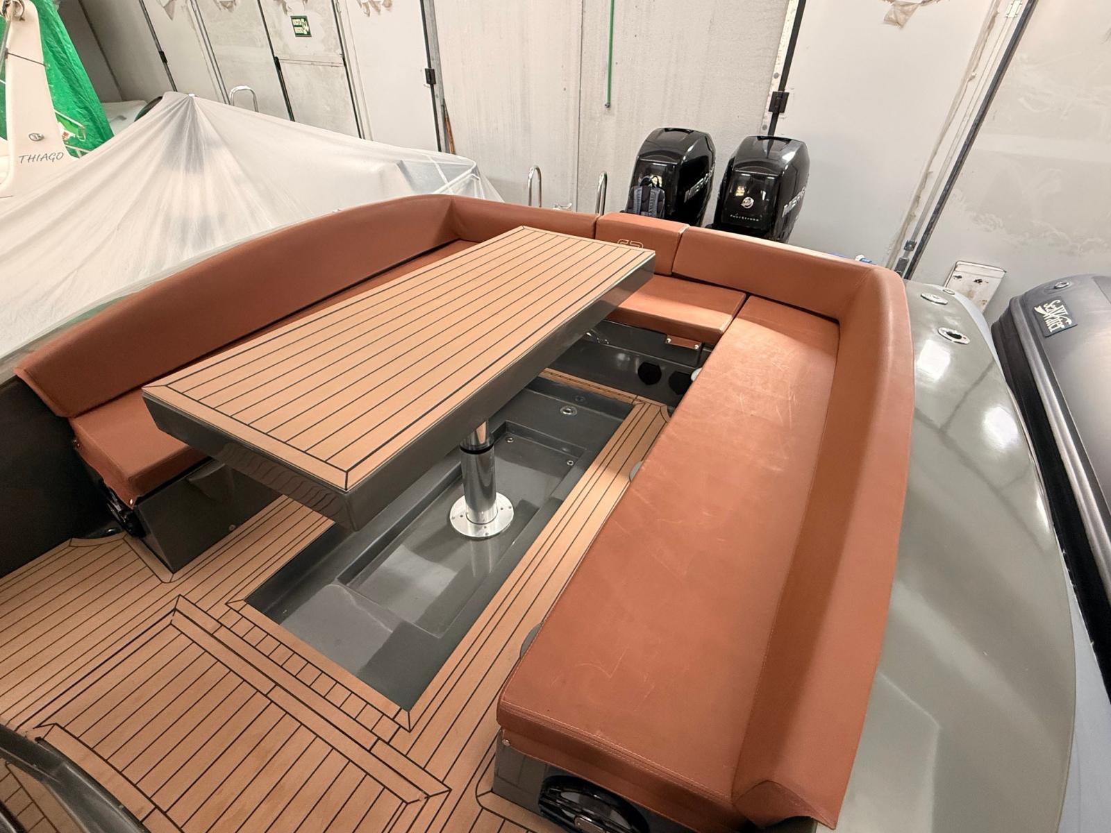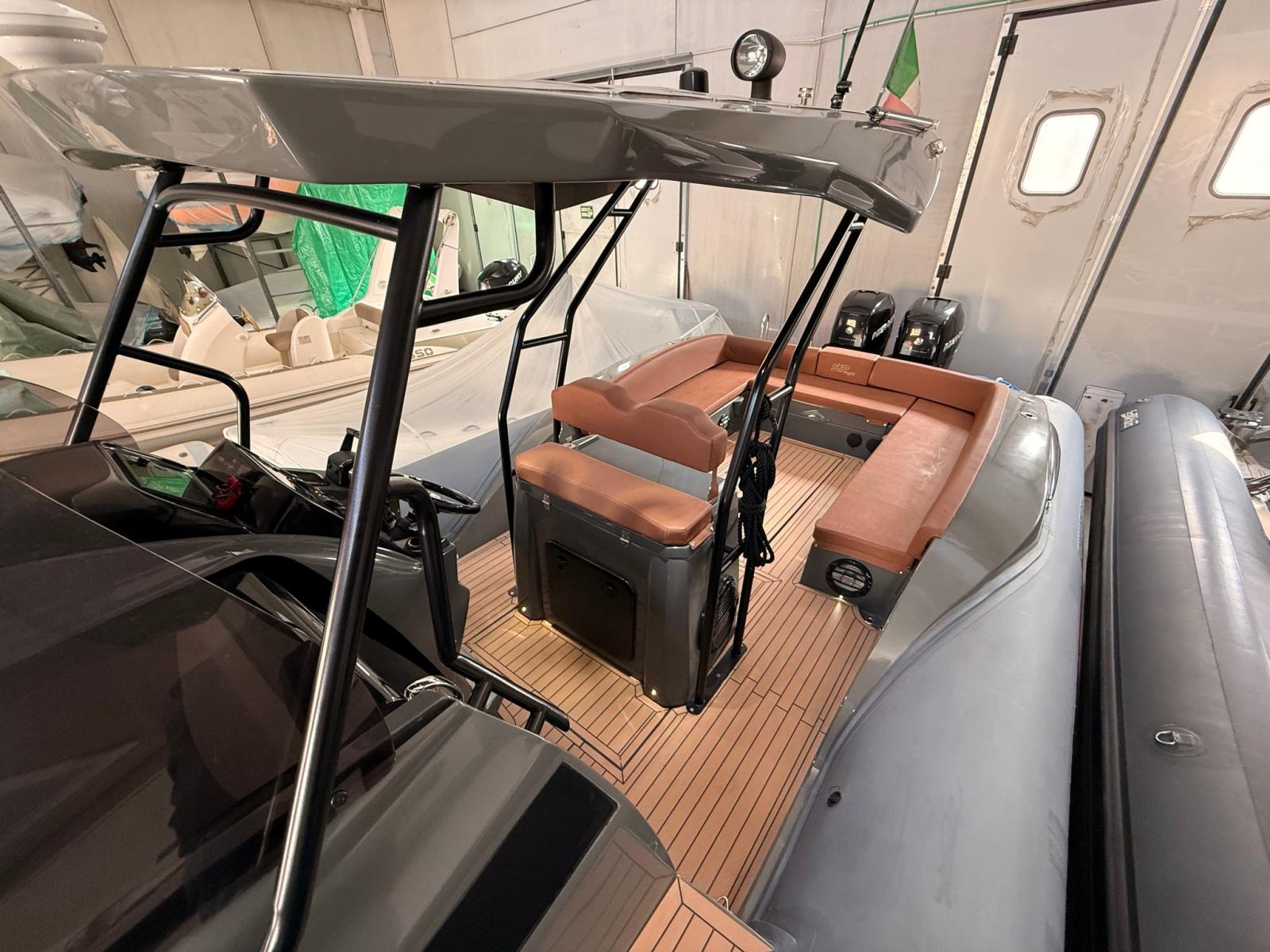 Alternateur, Ancre (10 KG), Auto Dynamic Trim Interceptor, Eau sous pression, Batteries (3 (2 x 100 Ah servizi - 1 x180 Ah MOTORE)), Passavant en teck (CHIMTEAK), Câble d’alimentation à quai, 2 Douche de cockpit, Crochet de remorquage pour ski nautique, Lavage de chaine, Lavabo dans le cockpit, 16 Éclairage de courtoisie, 6 Spots sous-marins (RGB), 2 Panneau solaire (SOLBIAN), Défenses, Pompe de cale manuelle, Cockpit en teck (CHIMTEAK), Prise de quai, Guindeau électrique, 2 Echelle de bain, table de cockpit (ELETTRICO), Corne, T-Top, Pont en teck.