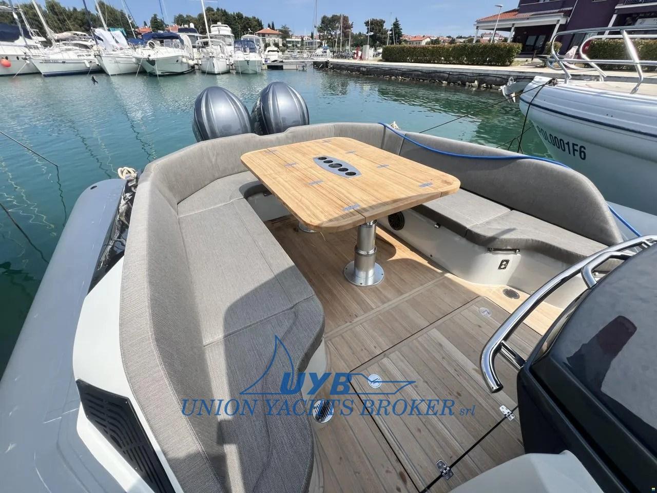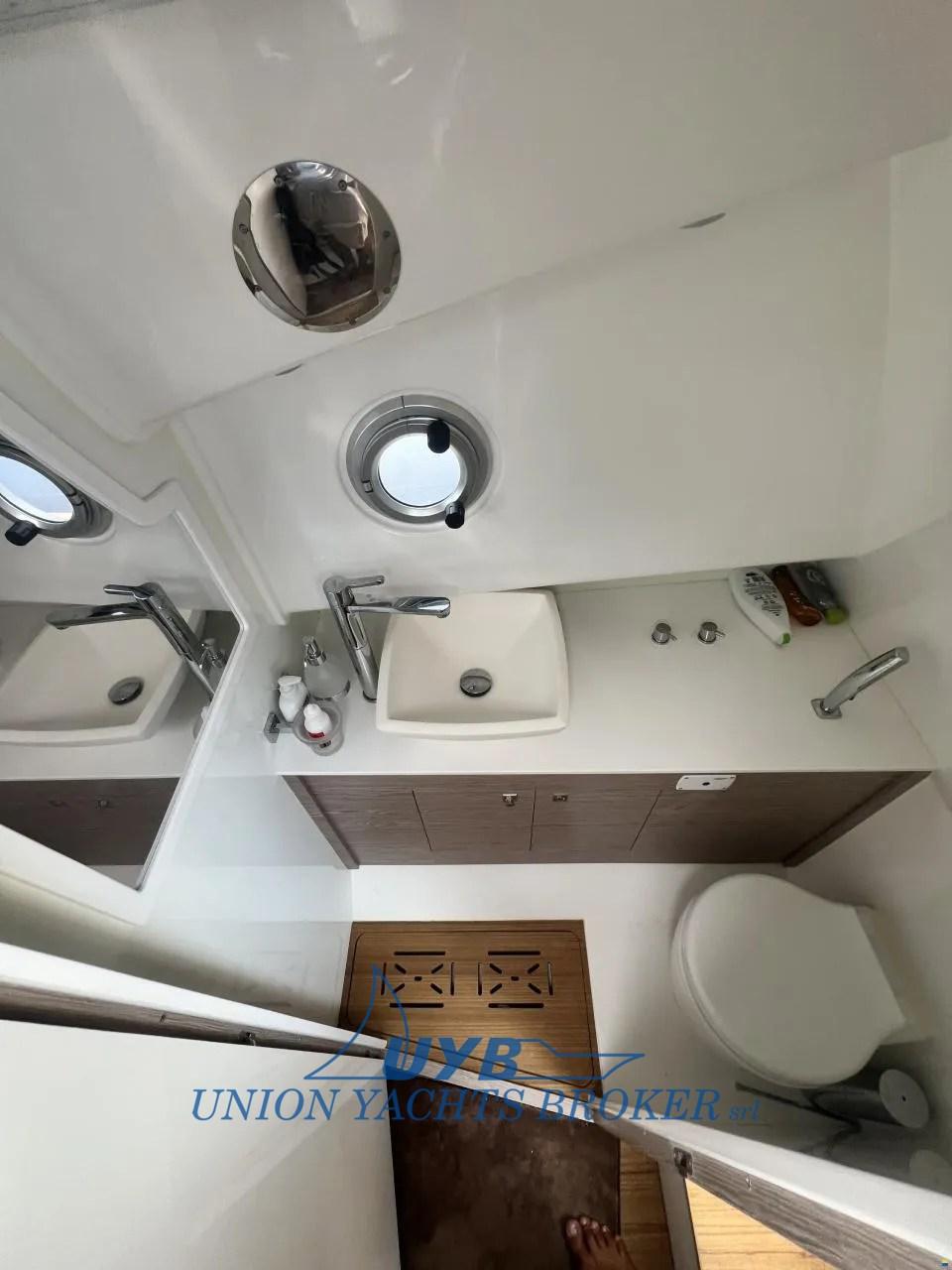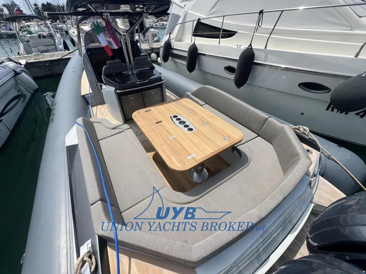 Lavabo dans le cockpit, Plateforme arrière, Pont en teck, Cockpit en teck, Prise de quai, Echelle de bain, table de cockpit (abbattibile), T-Top.