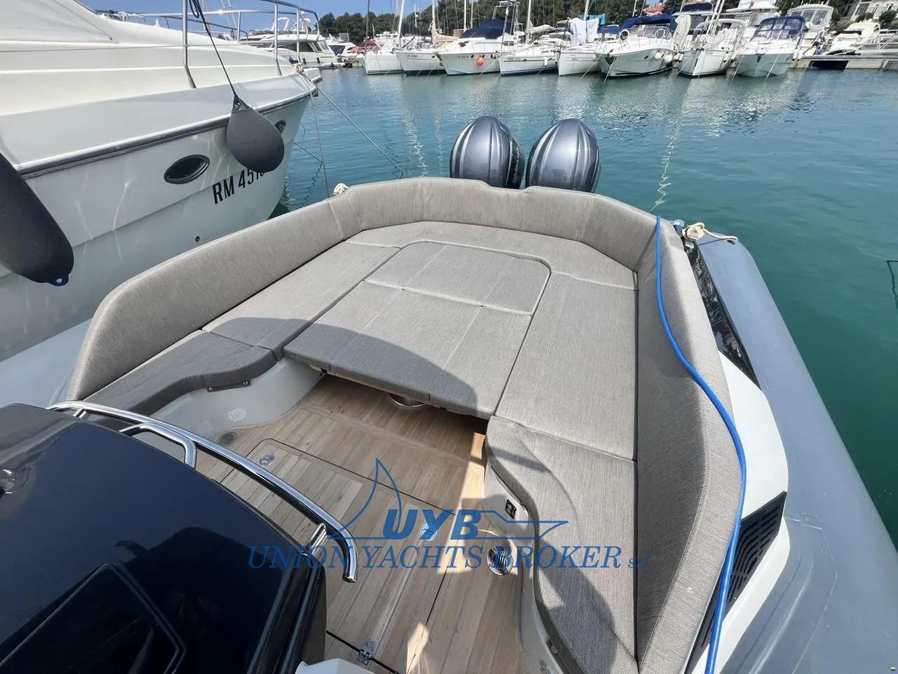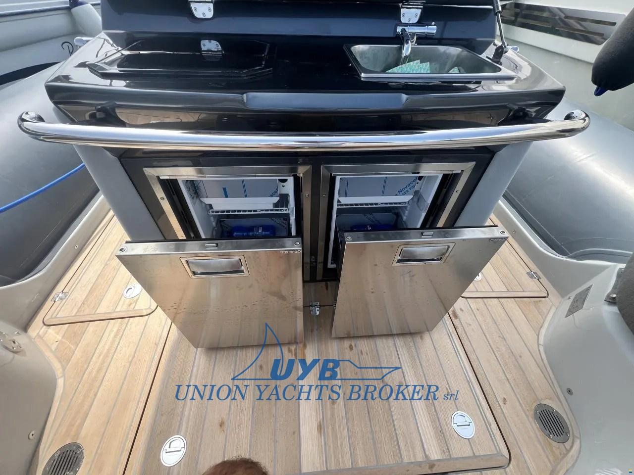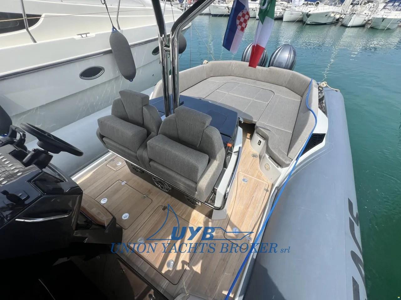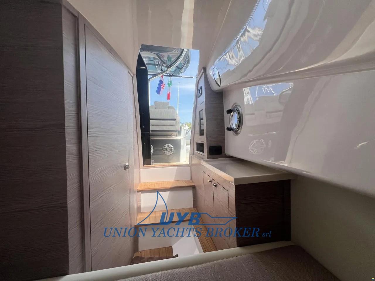 Lavabo dans le cockpit, Plateforme arrière, Pont en teck, Cockpit en teck, Prise de quai, Echelle de bain, table de cockpit (abbattibile), T-Top.