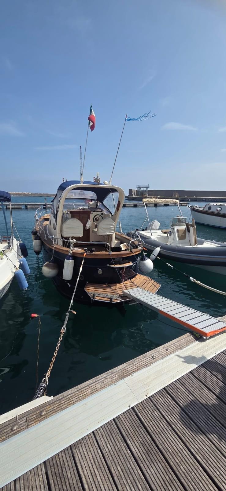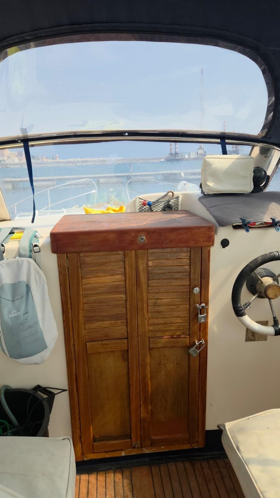 Ancre (35 mt catena), 4 Batteries, Douche de cockpit, 10 Défenses, Passerelle, Plateforme arrière (Rifatta 2026 con passerella+doccia), Pompe de cale manuelle, Pont en teck, Guindeau électrique.