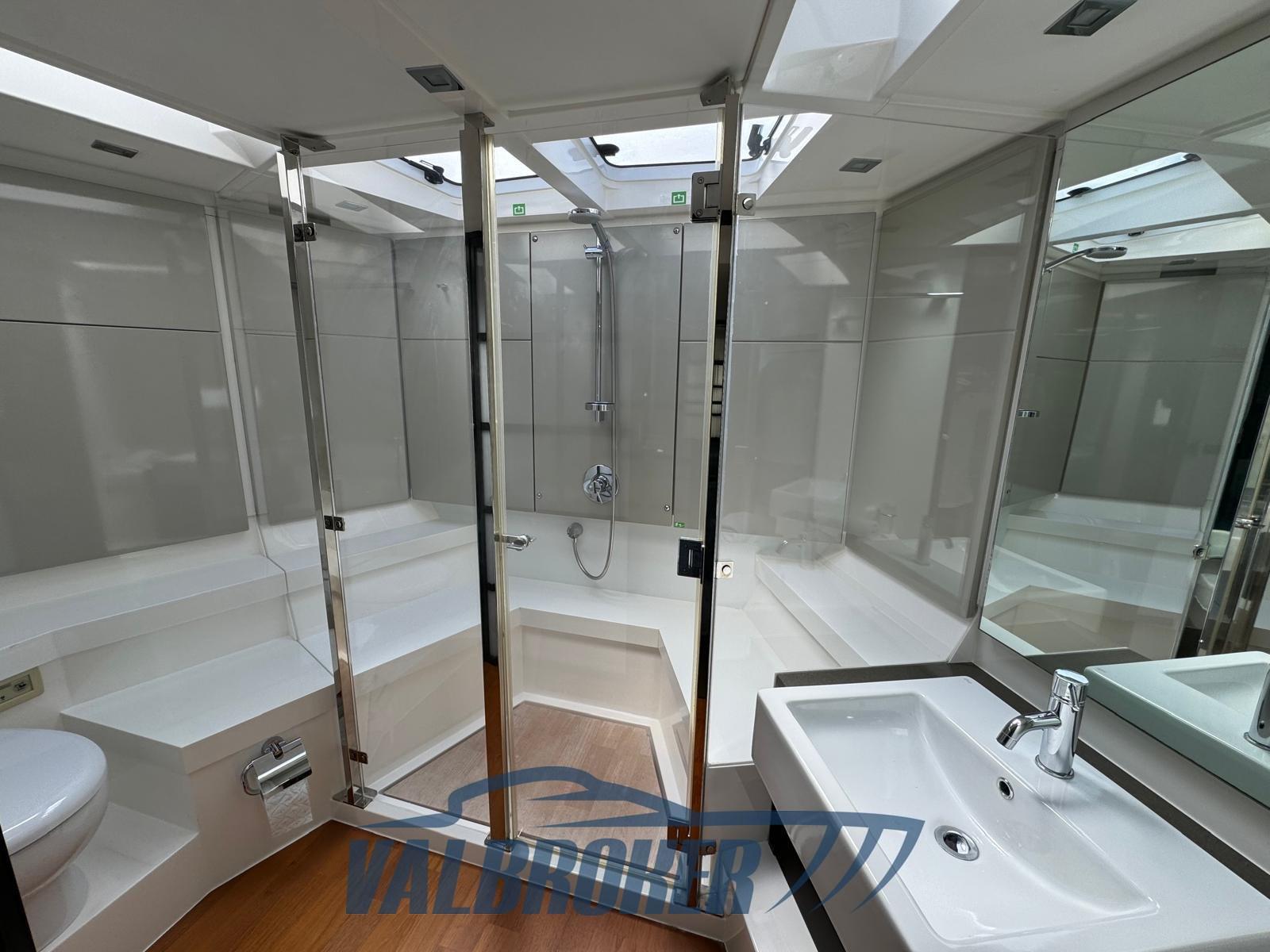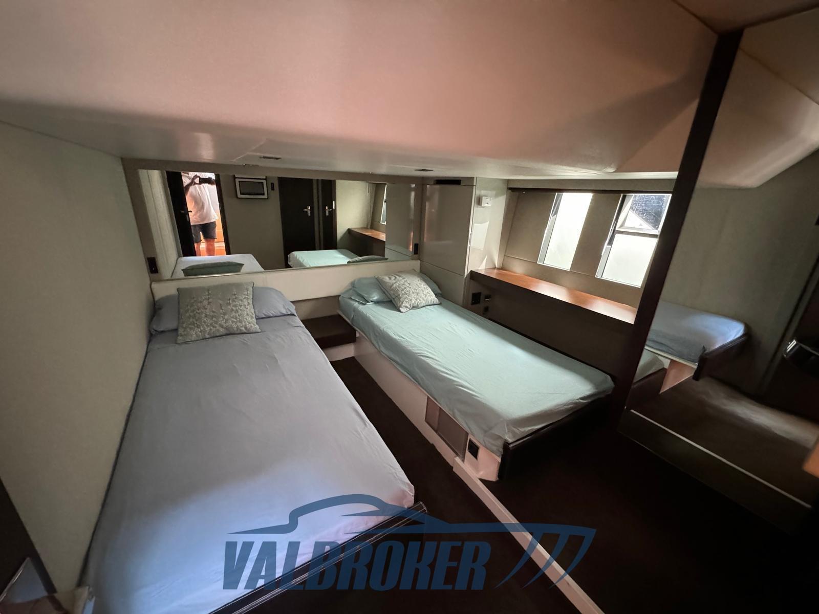 Sportcruiser élégant et contemporain. Cabine principale pleine poutre avec salle de bain attenante, deux cabines d’amis avec salle de bain attenante et cabine d’équipage. Propulsé par 2 moteurs Volvo Penta D13 à transmission par arbre de 900 HP, seulement 700 heures de moteur.