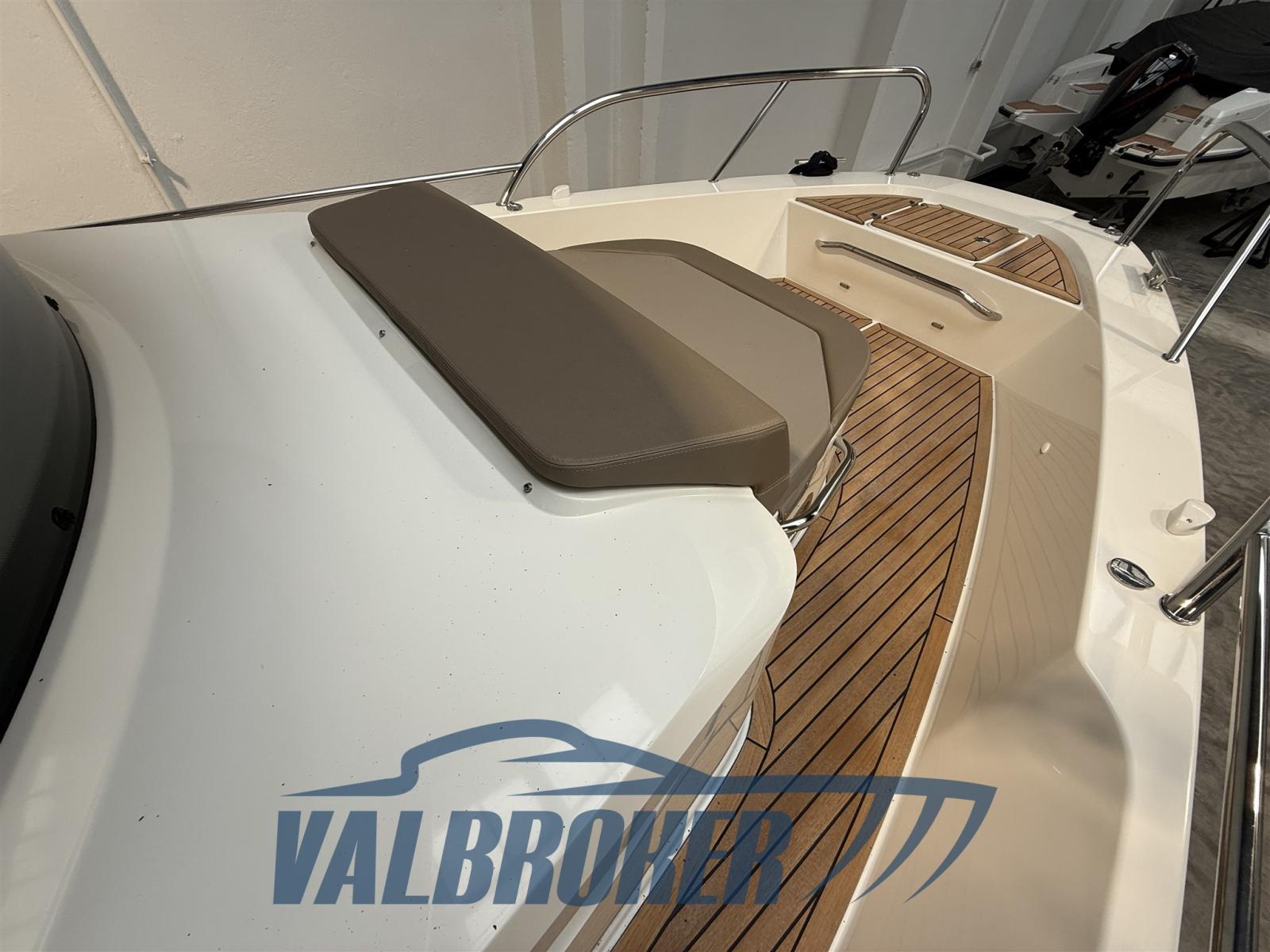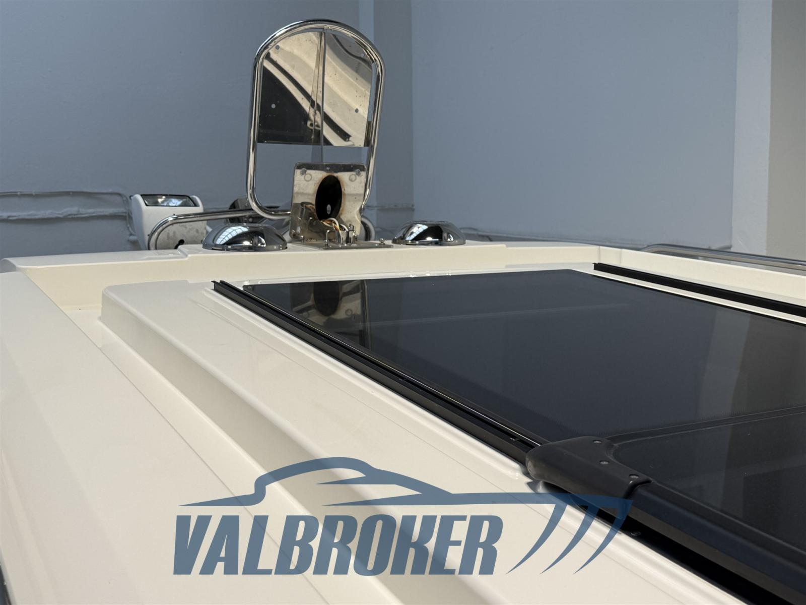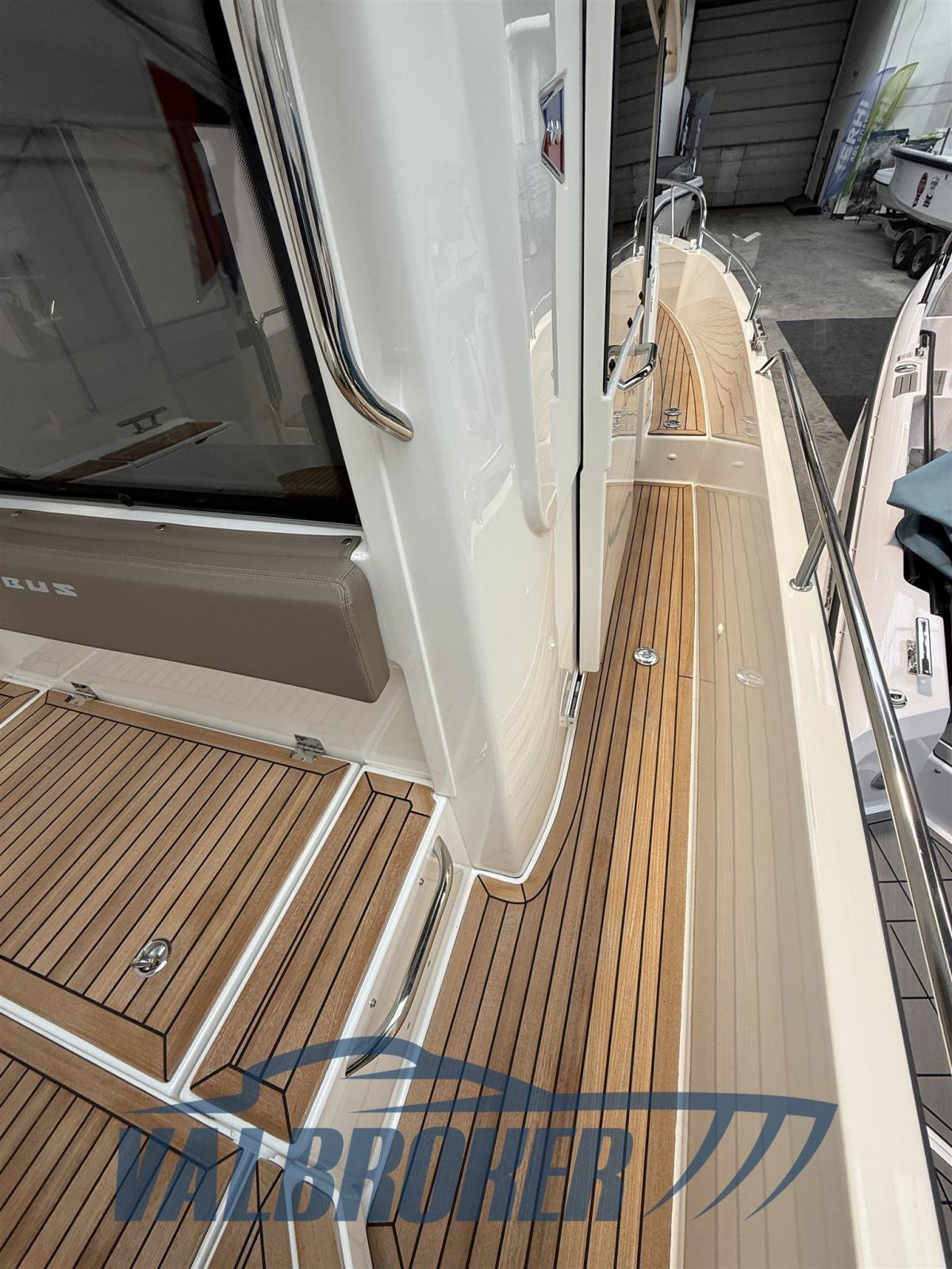 Auto Dynamic Trim Interceptor (Zipwake), Eau sous pression, Passavant en teck, Douche de cockpit, Propulseur d'étrave (Sleipner SE40), Phare de poursuite (inox con joystick), Crochet de remorquage pour ski nautique, Porte latérale, Prise de quai, Guindeau électrique, Echelle de bain.