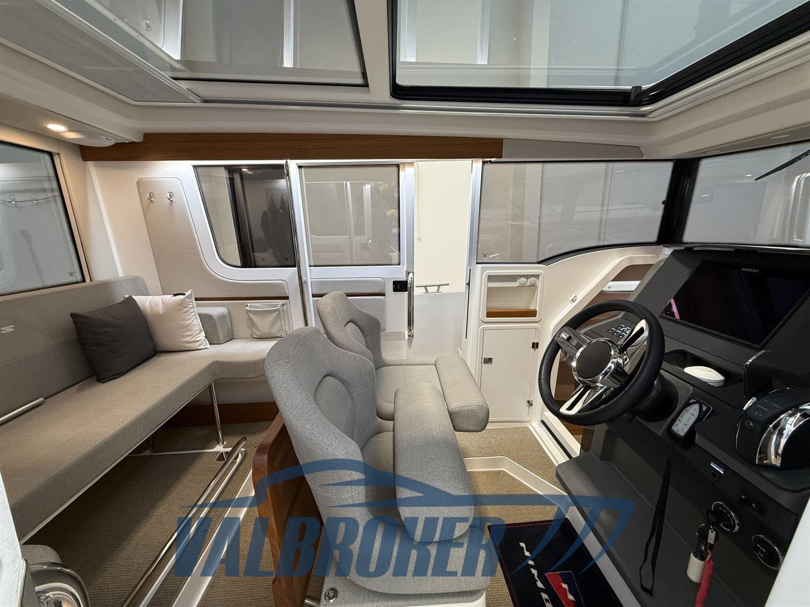 Toit rigide suédois au design moderne. Cockpit spacieux et polyvalent. Sous le pont, couchette double à l’avant et salle de bain séparée. Utilisé pour une saison seulement. Comme neuf.