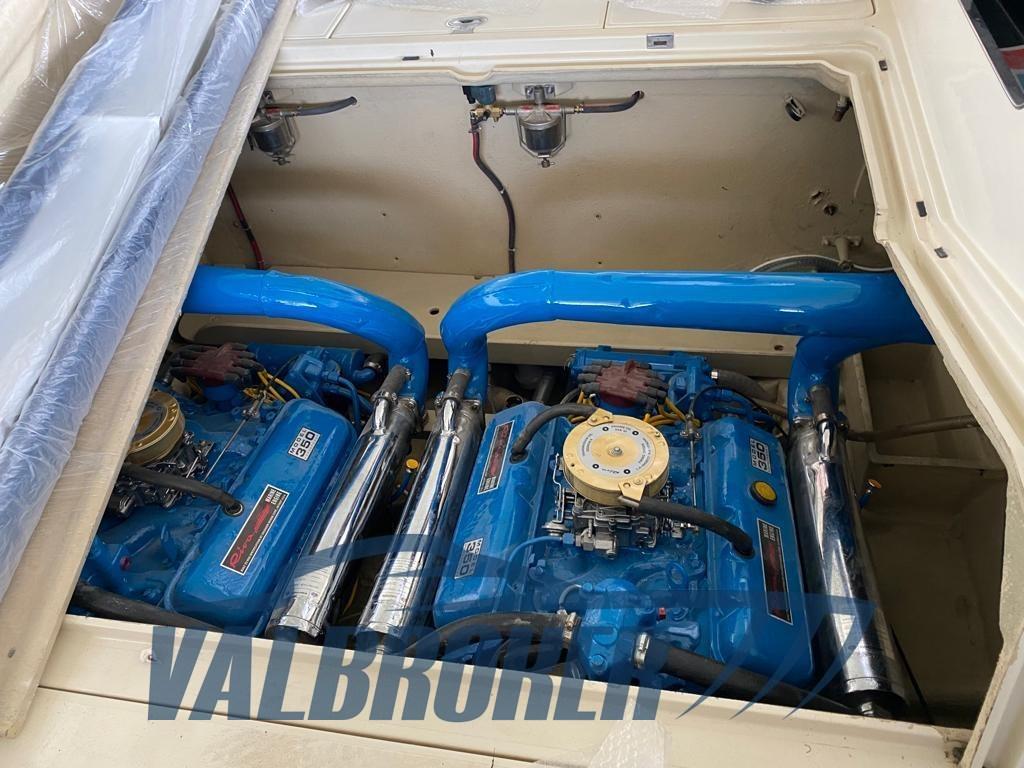 Riva Saint Tropez visible sur le lac de Garde. Bateau avec 2x350 CV Termo Electro Crusaider Marine V8 moteurs essence révisé et ramené à zéro heure. Numéro de coque 218. Entièrement restauré : onduleurs mis à zéro, révision totale des réservoirs de carburant et d’eau, nouvelles bagues d’essieu, nouvelles bagues de direction, hélices, gouvernails et arbres d’hélice polis, nouveaux zincs, nouveaux filtres à carburant et à eau, nouveaux robinets, tous nouveaux tuyaux, conduites d’échappement remises à zéro et repeintes, peinture totale des coffres, coffre à ancre et compartiment moteur, porte pliante d’origine restaurée à neuf avec sellerie neuve, Nouveaux rétroviseurs intérieurs, nouveau système électrique, instruments de montre révisés, nouveau kit de direction hydraulique avec installation spécifique, nouveau compas de rivage d’origine, ancre avec corde neuve, pare-brise neuf gris fumé, chrome et profilés refaits, sellerie totale neuve à l’intérieur et à l’extérieur, plafonds intérieurs neufs, auvent avec chandeliers d’origine restaurés, polissage total intérieur extérieur, ligne de flottaison et anti-mauvaises herbes, Peinture des lignes bleues et peinture des sièges du pilote et du copilote, nouvelle sellerie de banquette squelette, nouveaux câbles de levage, nouvelle douille d’origine, tapis de rivage personnalisés, nouveau tonneau personnalisé.
