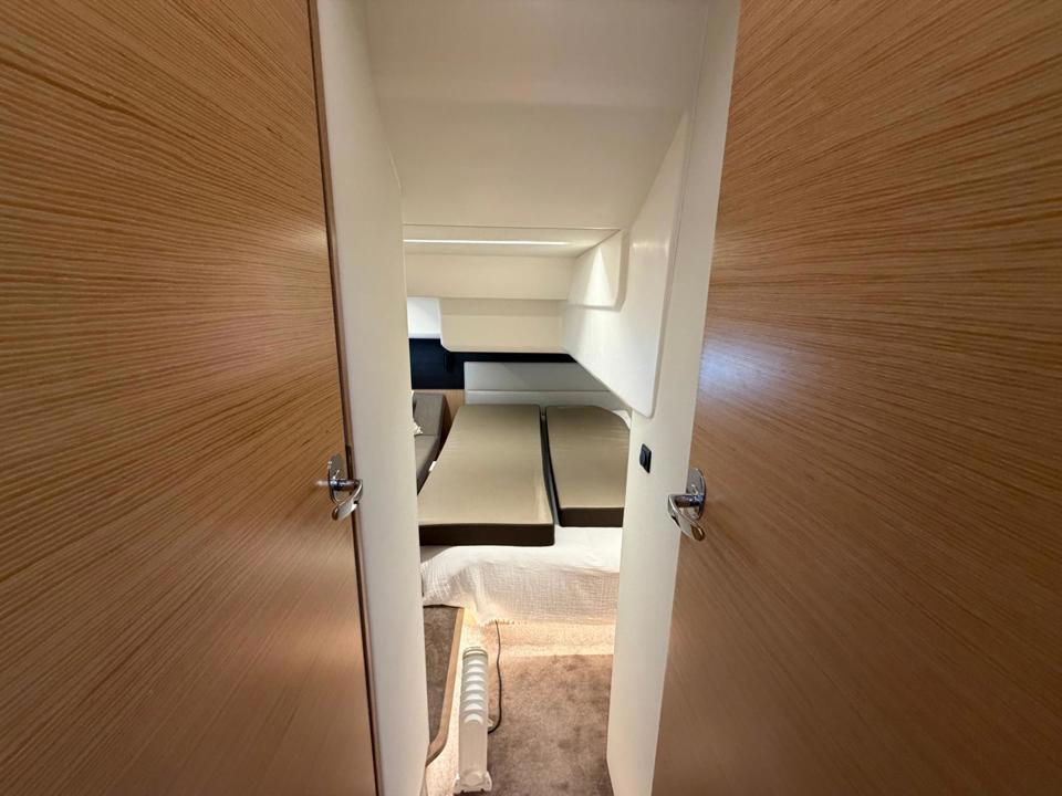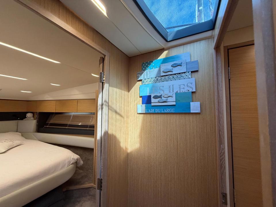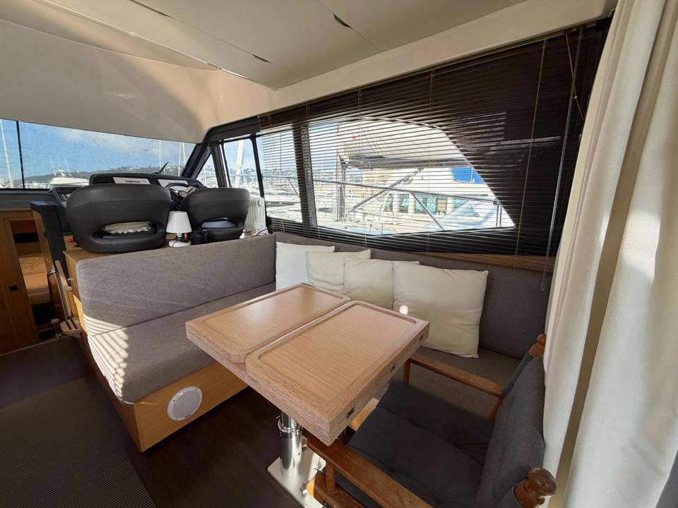 Ce flybridge séduit par ses lignes élégantes et contemporaines, ainsi que par un aménagement intérieur généreux, à la fois lumineux, spacieux et confortable.