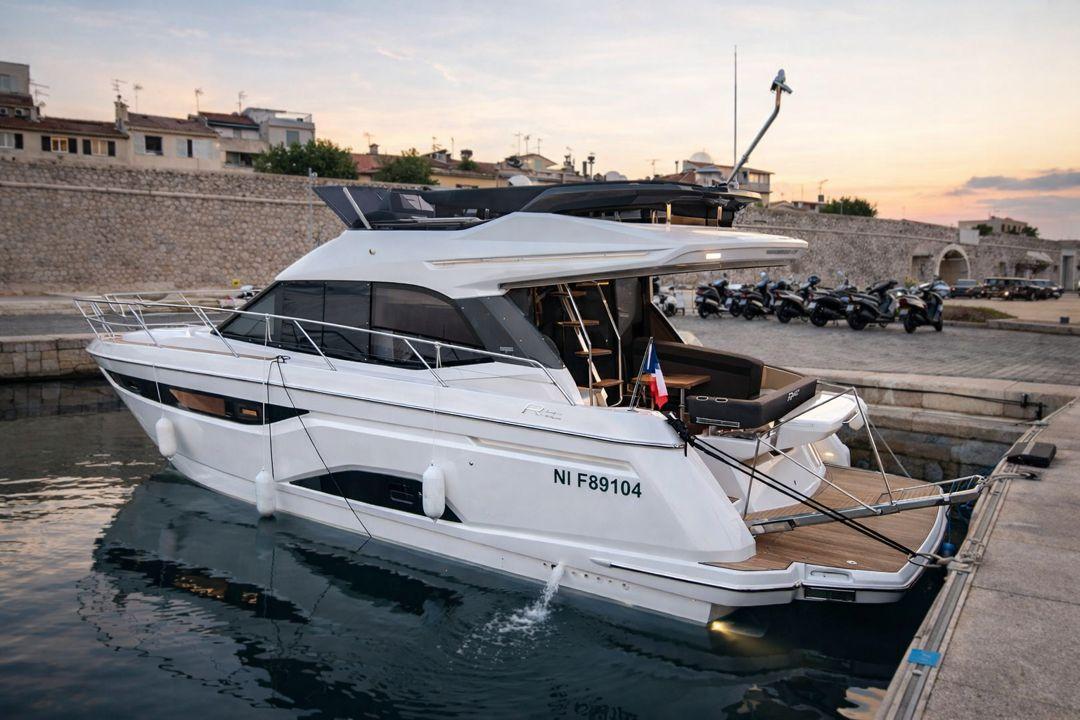 Rare sur le marché, ce Bavaria R40 Fly de 2019 se présente dans un état irréprochable. Il n’a jamais été loué et totalise seulement 300 heures de navigation.