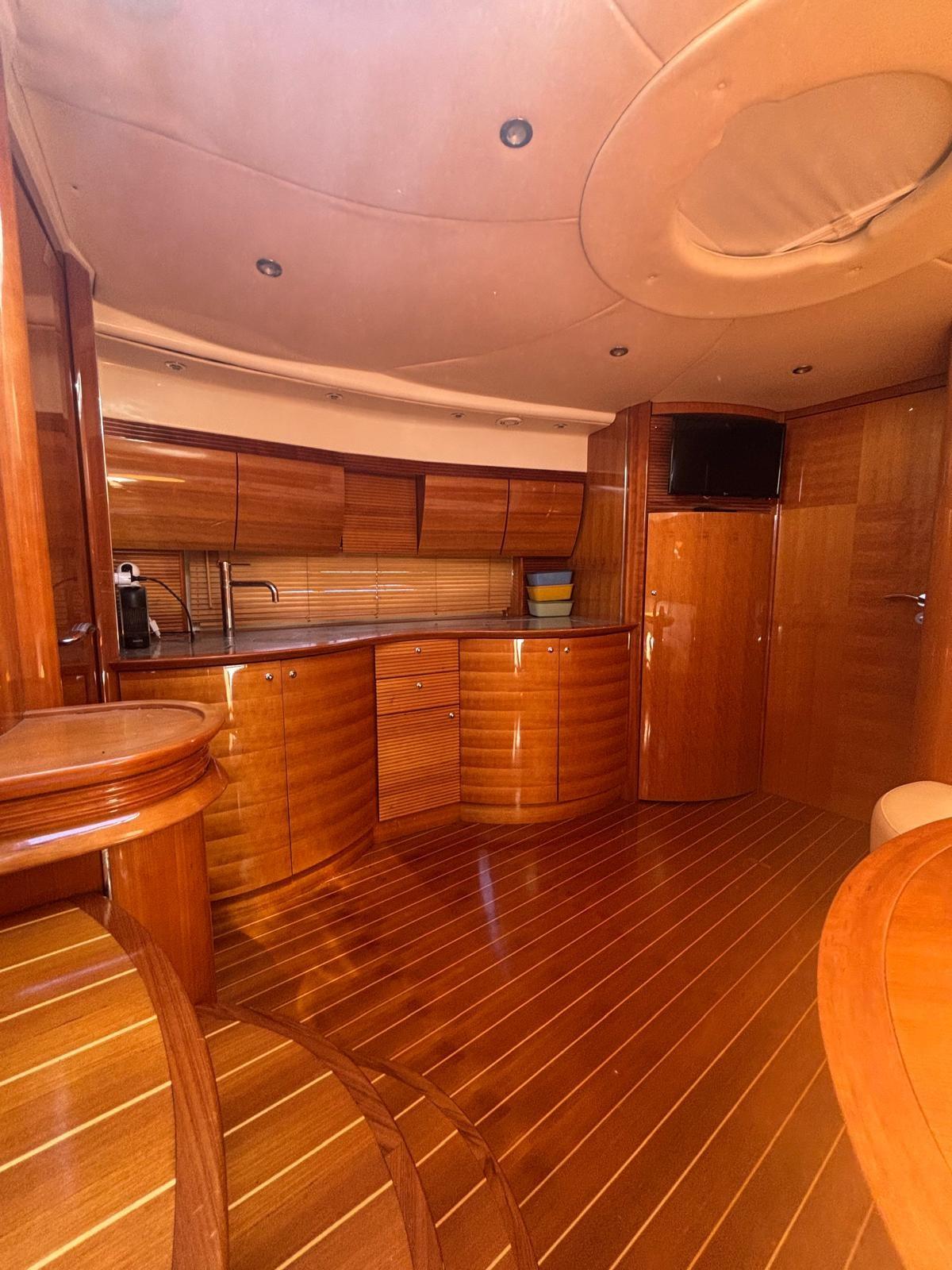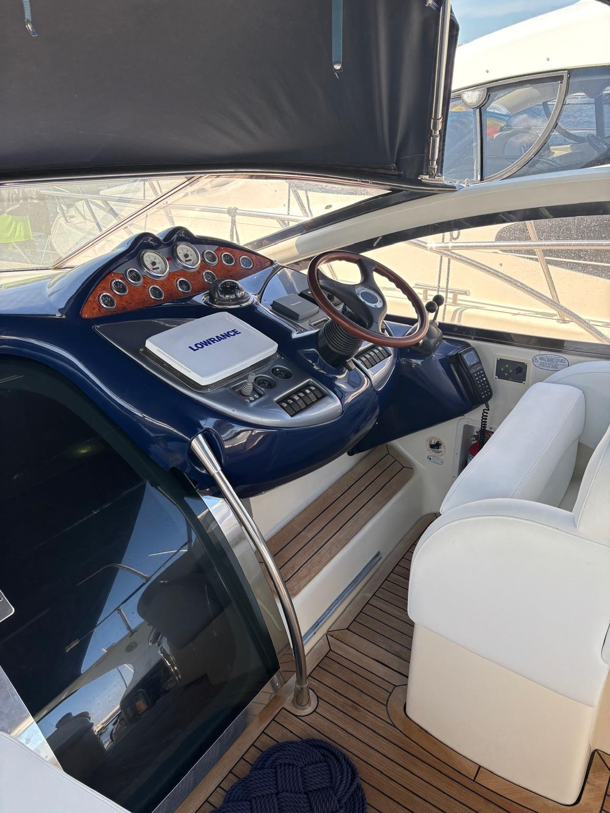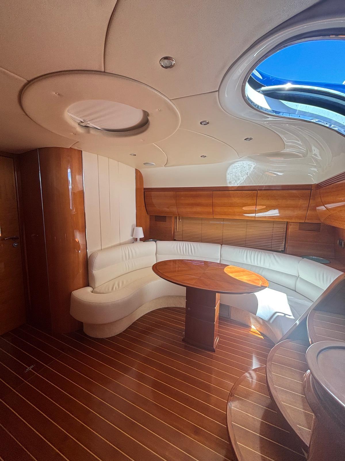 Alarme moteur, Couleur spéciale (Blu Hull), Douche de cockpit, Flaps hydrauliques, Garage à annexe, Passerelle (Idraulica), 3 Pompe de cale automatique, 3 Pompe de cale électrique, Cockpit en teck, Prise de quai, Echelle de bain, table de cockpit.