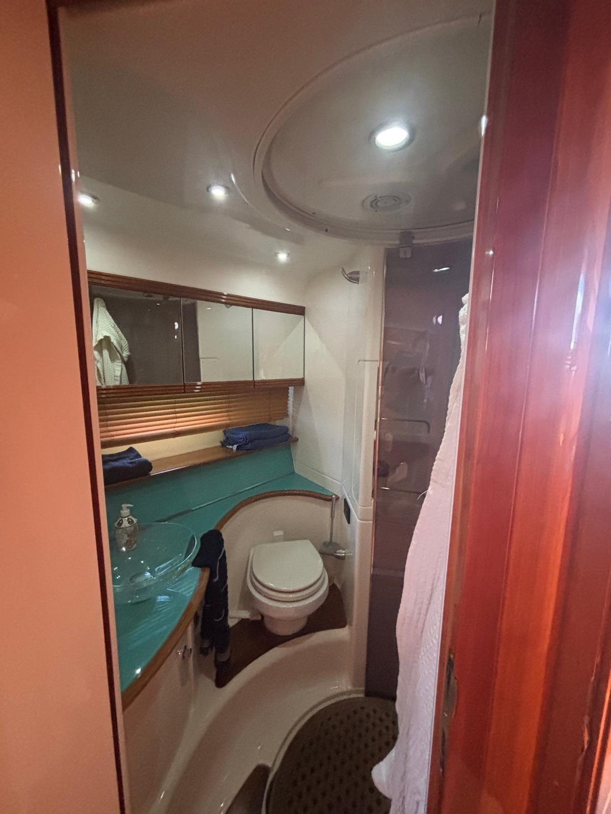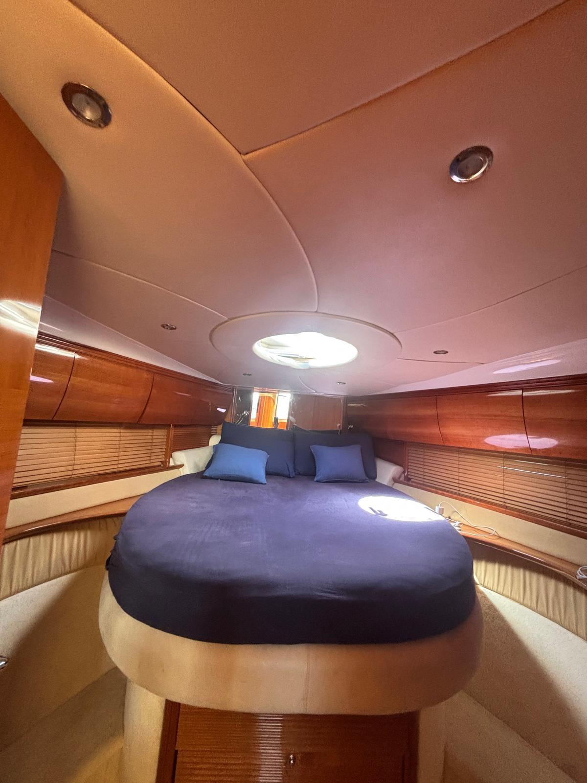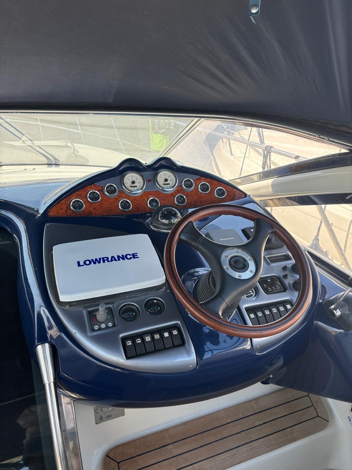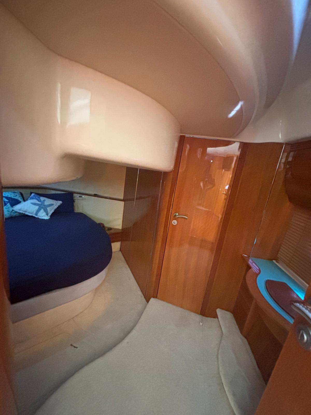 Alarme moteur, Couleur spéciale (Blu Hull), Douche de cockpit, Flaps hydrauliques, Garage à annexe, Passerelle (Idraulica), 3 Pompe de cale automatique, 3 Pompe de cale électrique, Cockpit en teck, Prise de quai, Echelle de bain, table de cockpit.