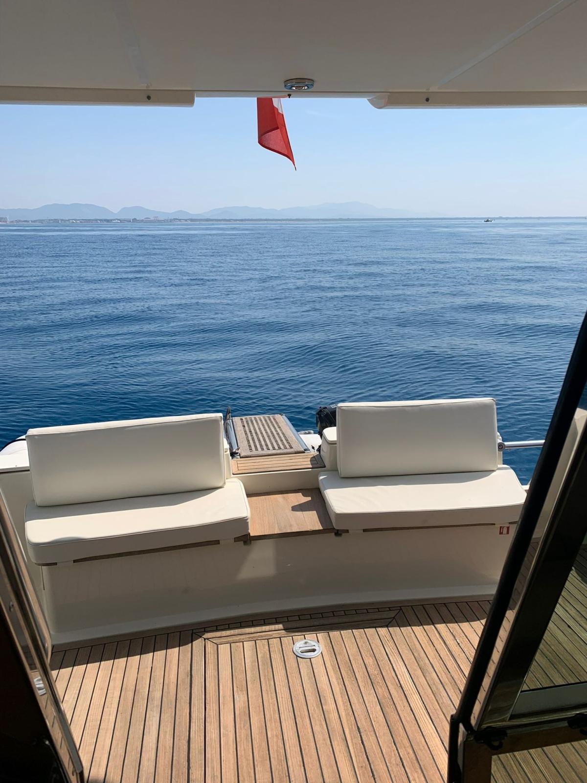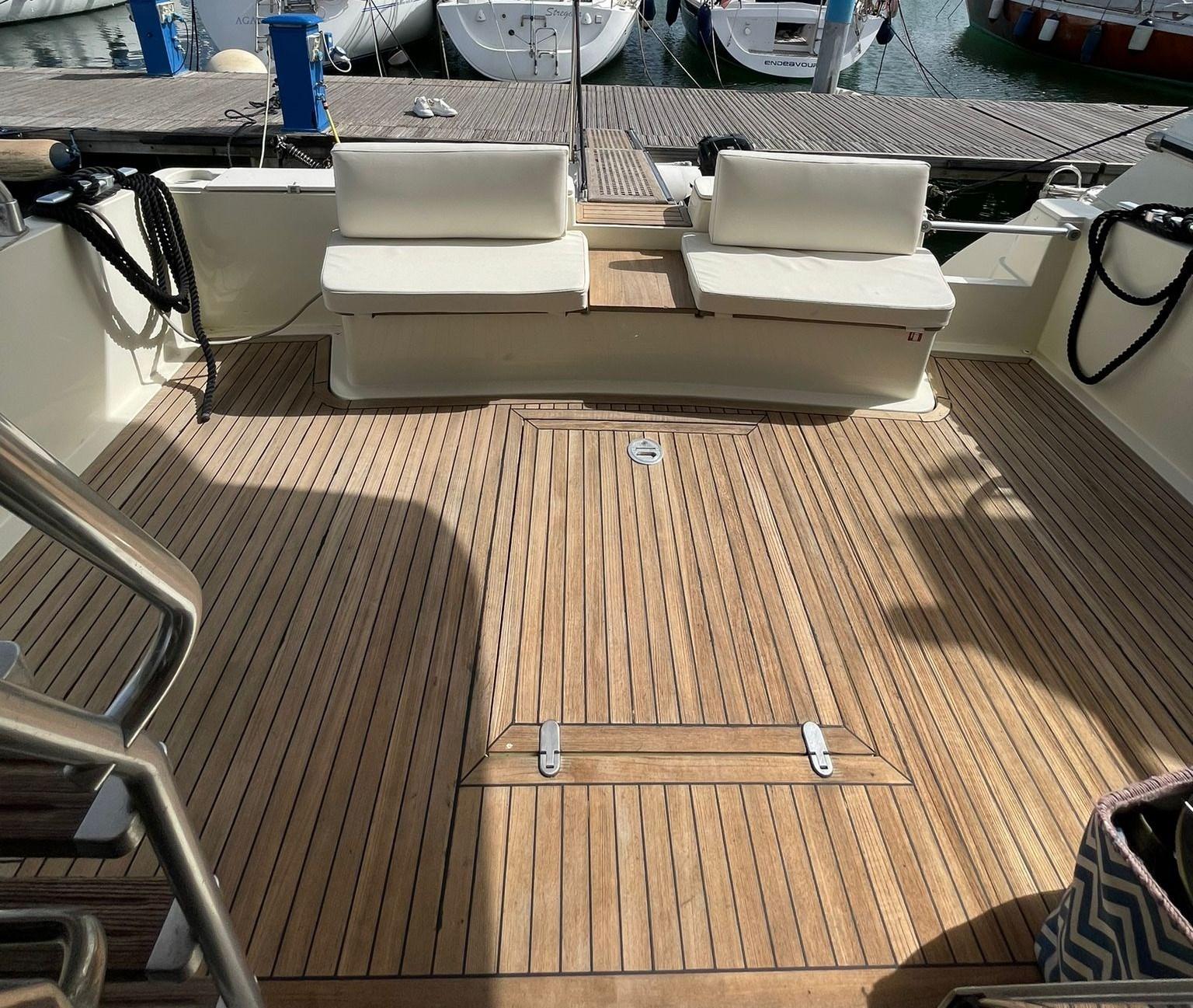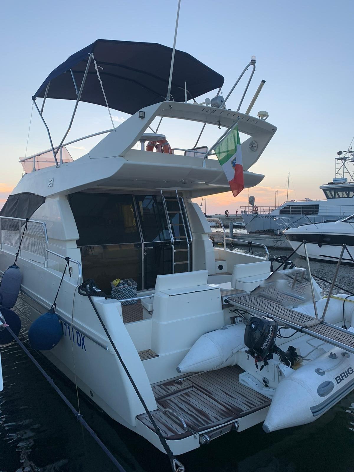 Chargeur de batterie (nuovo 2024), Douche de cockpit, Phare de poursuite, Flaps hydrauliques, Éclairage de courtoisie, Passerelle (idraulica Besenzoni), Cockpit en teck, Guindeau électrique, table de cockpit, Annexe (270cm Brig con motore Mercury 3,5).