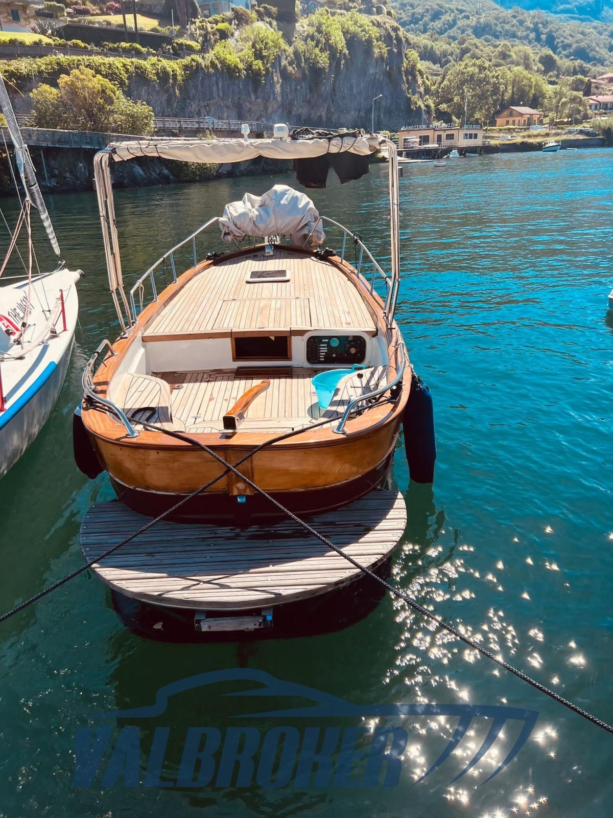 Gozzo en fibre de verre avec pont en teck. Toujours remettre sur place en hiver. Entretien régulier. Coussins entièrement refaits en 2021, housse de bateau 2022.