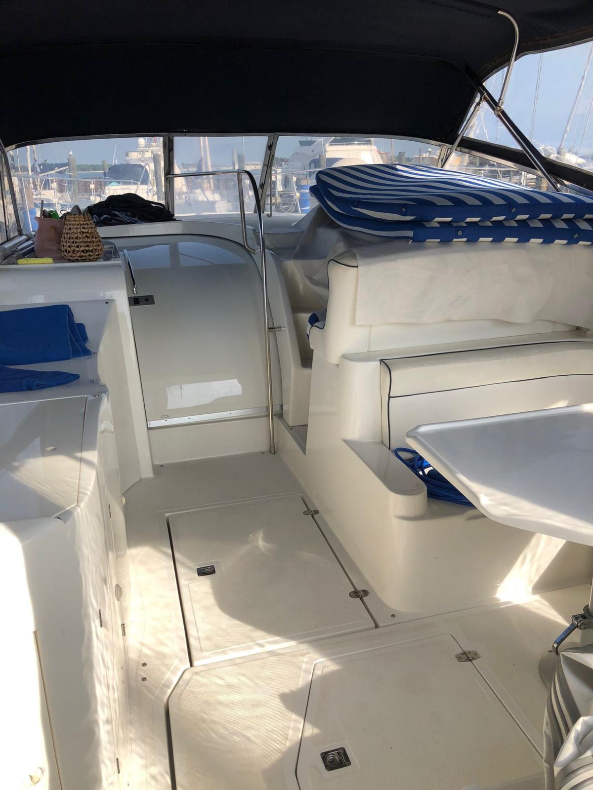 Alarme moteur, Eau sous pression, Batteries (nuove 2024), Chargeur de batterie (nuovo 2025), Douche de cockpit, 2 Flaps hydrauliques, Indicateurs de flaps, Éclairage de courtoisie, Passerelle (idraulica), Plateforme arrière, Pompe de cale automatique, Porte latérale, Cockpit en teck, Prise de quai, Onduleur, Rollbar, Guindeau électrique, Echelle de bain, table de cockpit (abbattibile), Table pliante de salon, Corne.