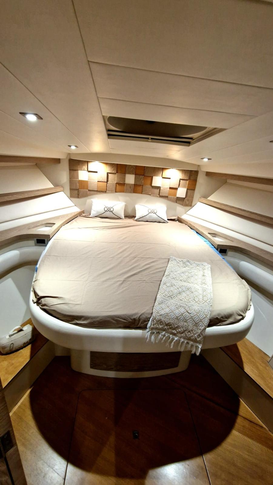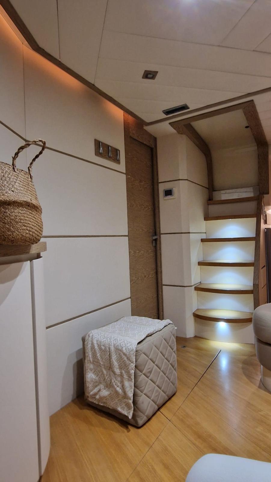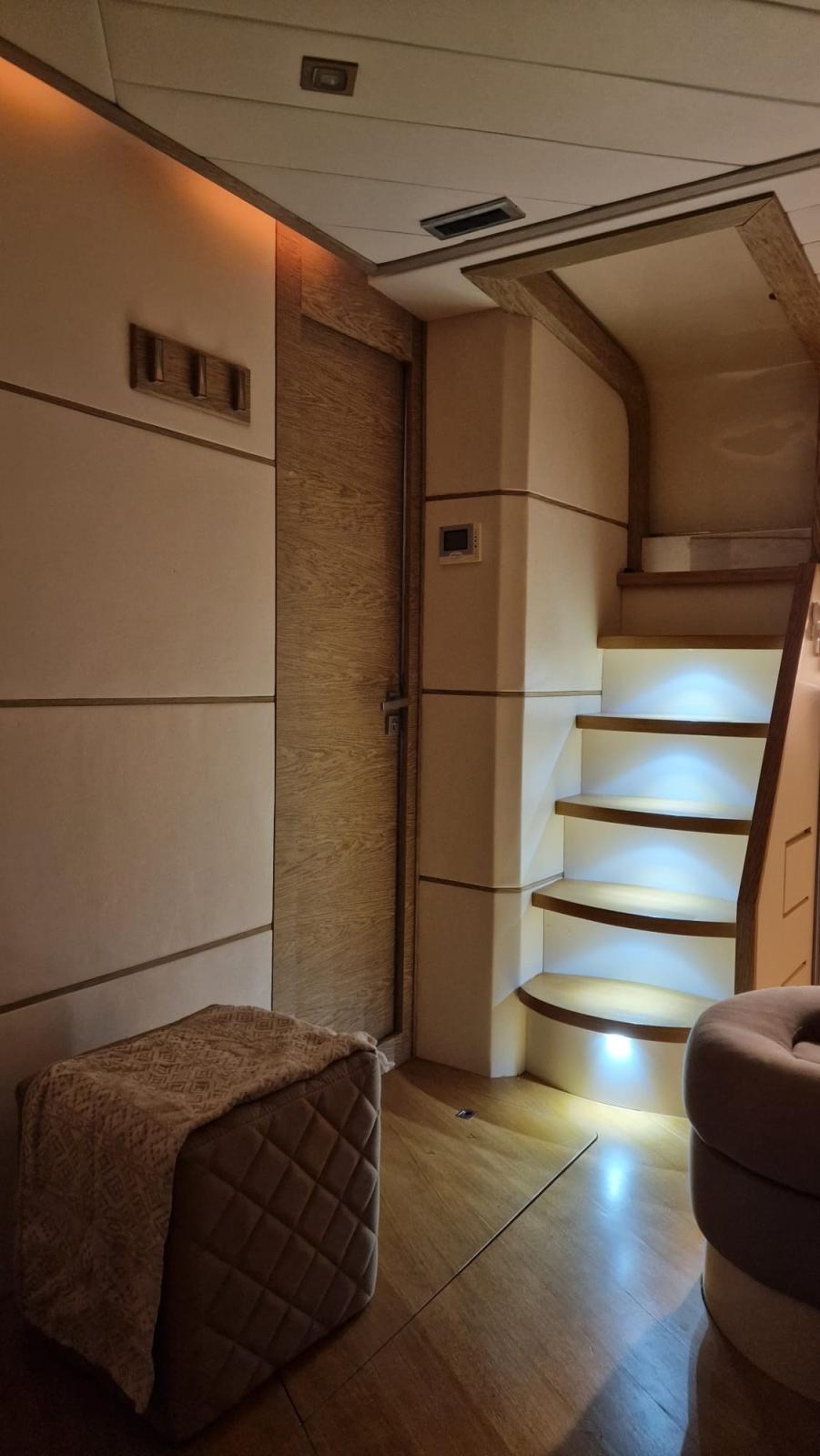 Nouveau mobilier intérieur en bois et cuir - Nouveaux rideaux et rembourrage intérieur - Nouveau pont en teck - Cockpit révisé avec création d’un canapé / terrasse - Nouveaux coussins extérieurs