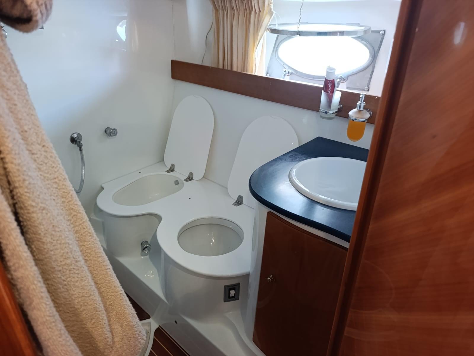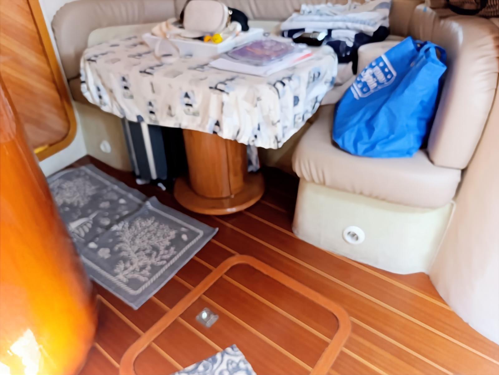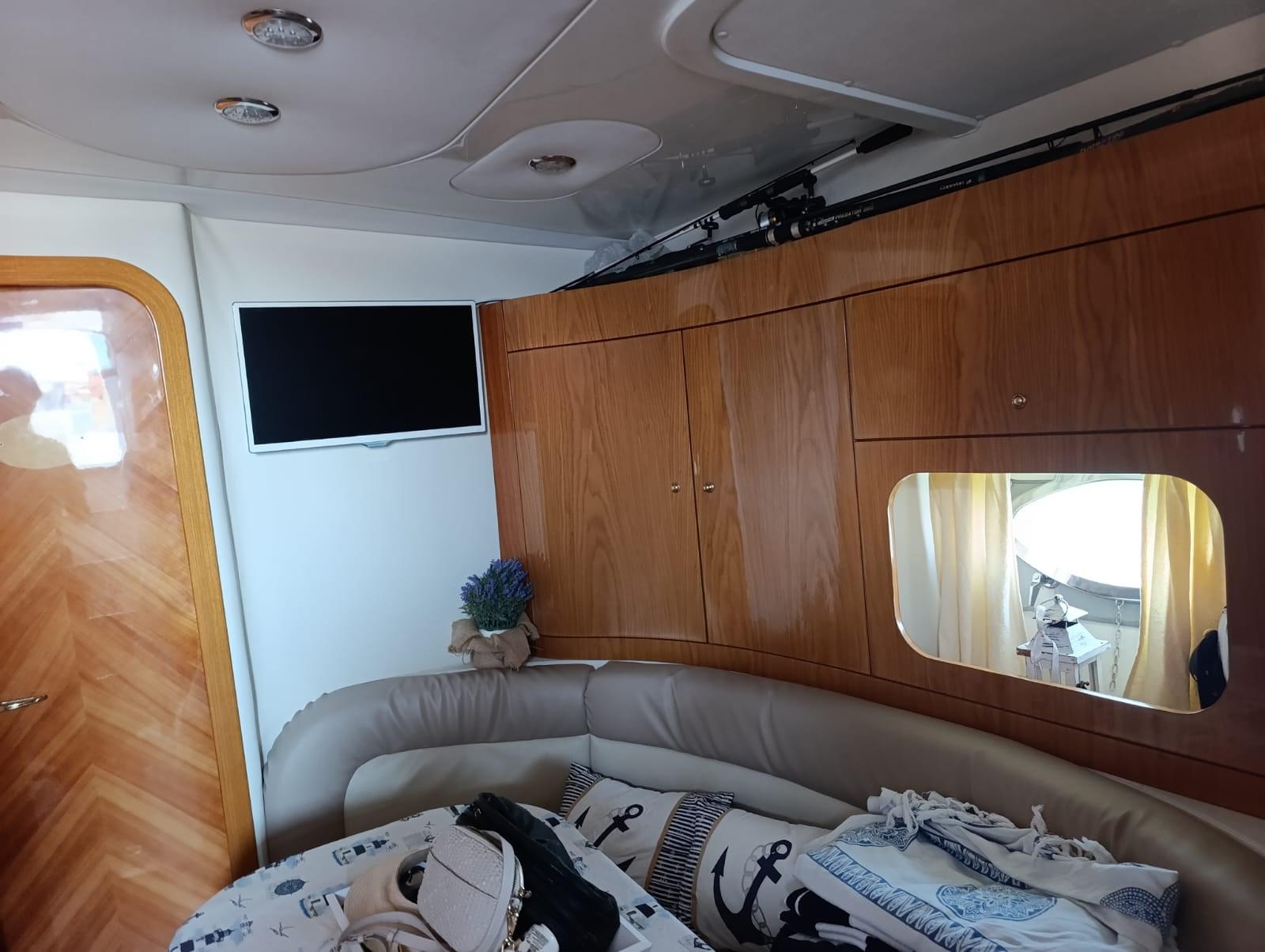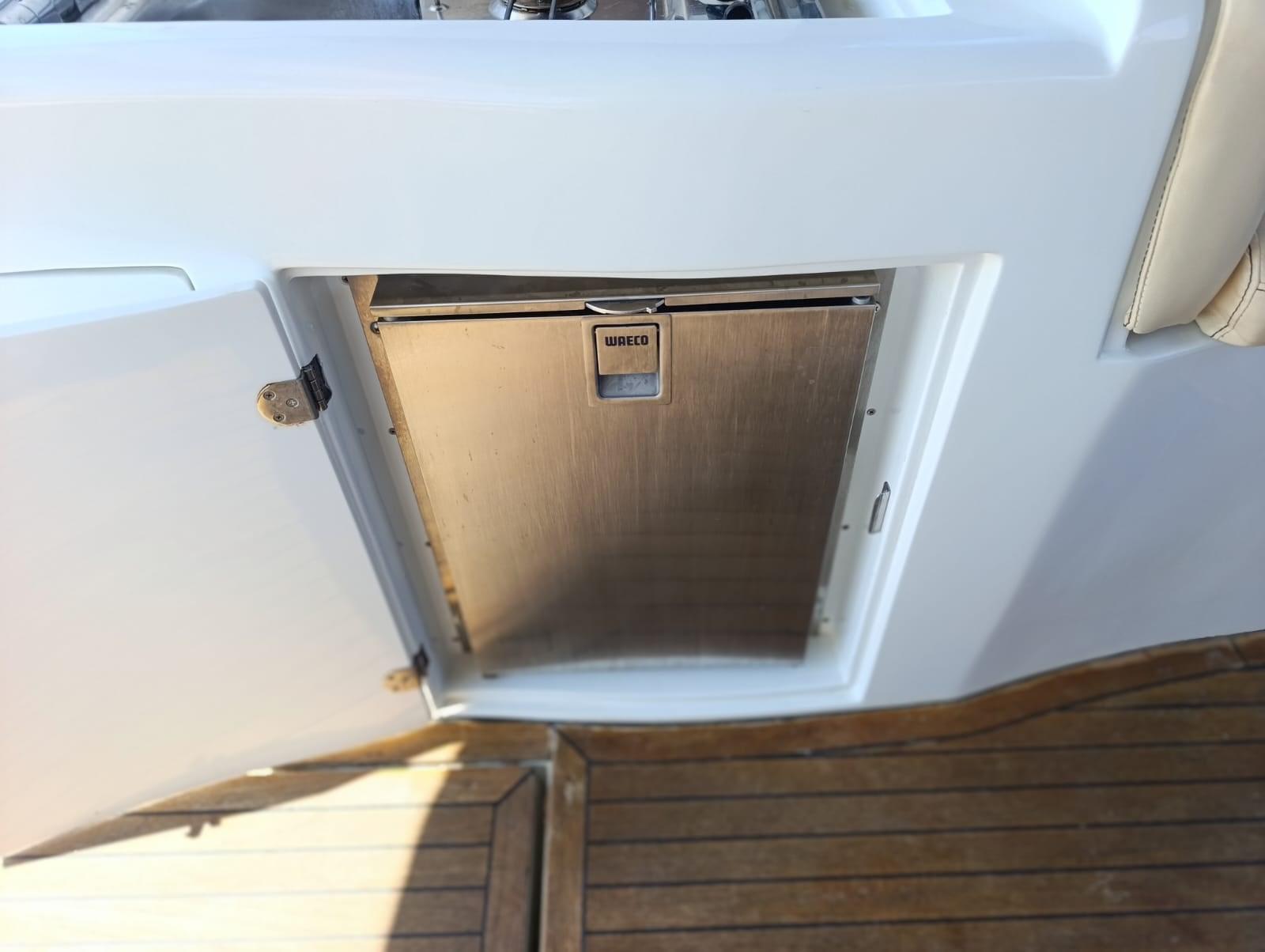 Alarme moteur, Eau sous pression, 5 Batteries (nuove 2025), Douche de cockpit, Phare de poursuite, 2 Flaps hydrauliques, Indicateurs de flaps, Lavabo dans le cockpit, Éclairage de courtoisie, Spots sous-marins, Passerelle (idraulica), Plateforme arrière, Pompe de cale automatique, Porte latérale, Prise de quai, Connexion eau sous pression à quai, Rollbar, Guindeau électrique, Echelle de bain, table de cockpit (abbattibile).