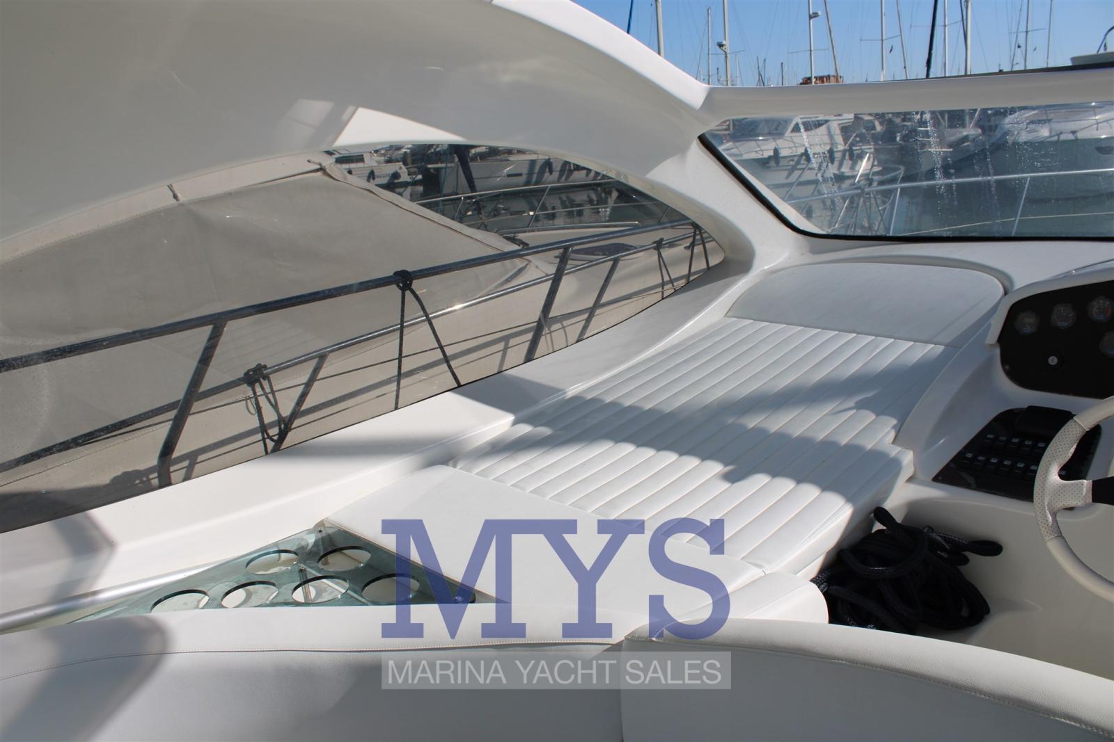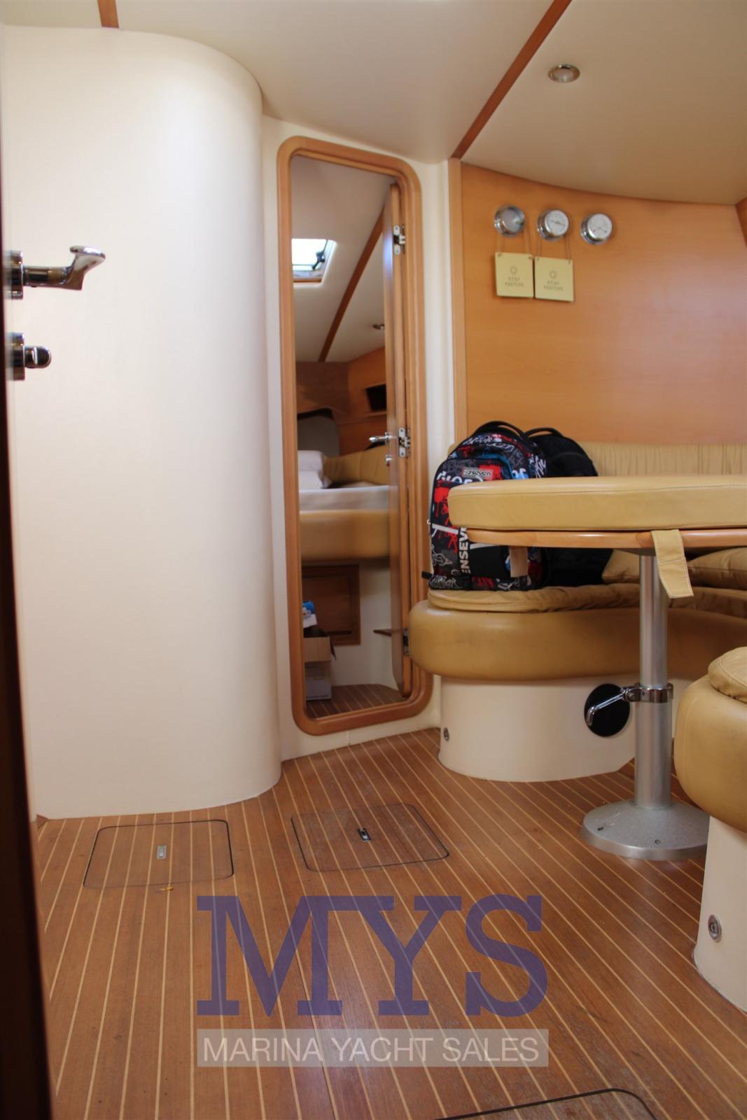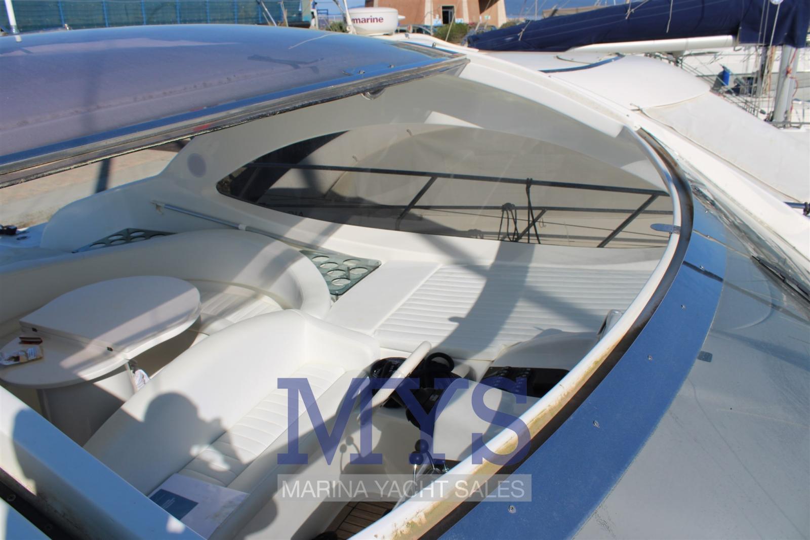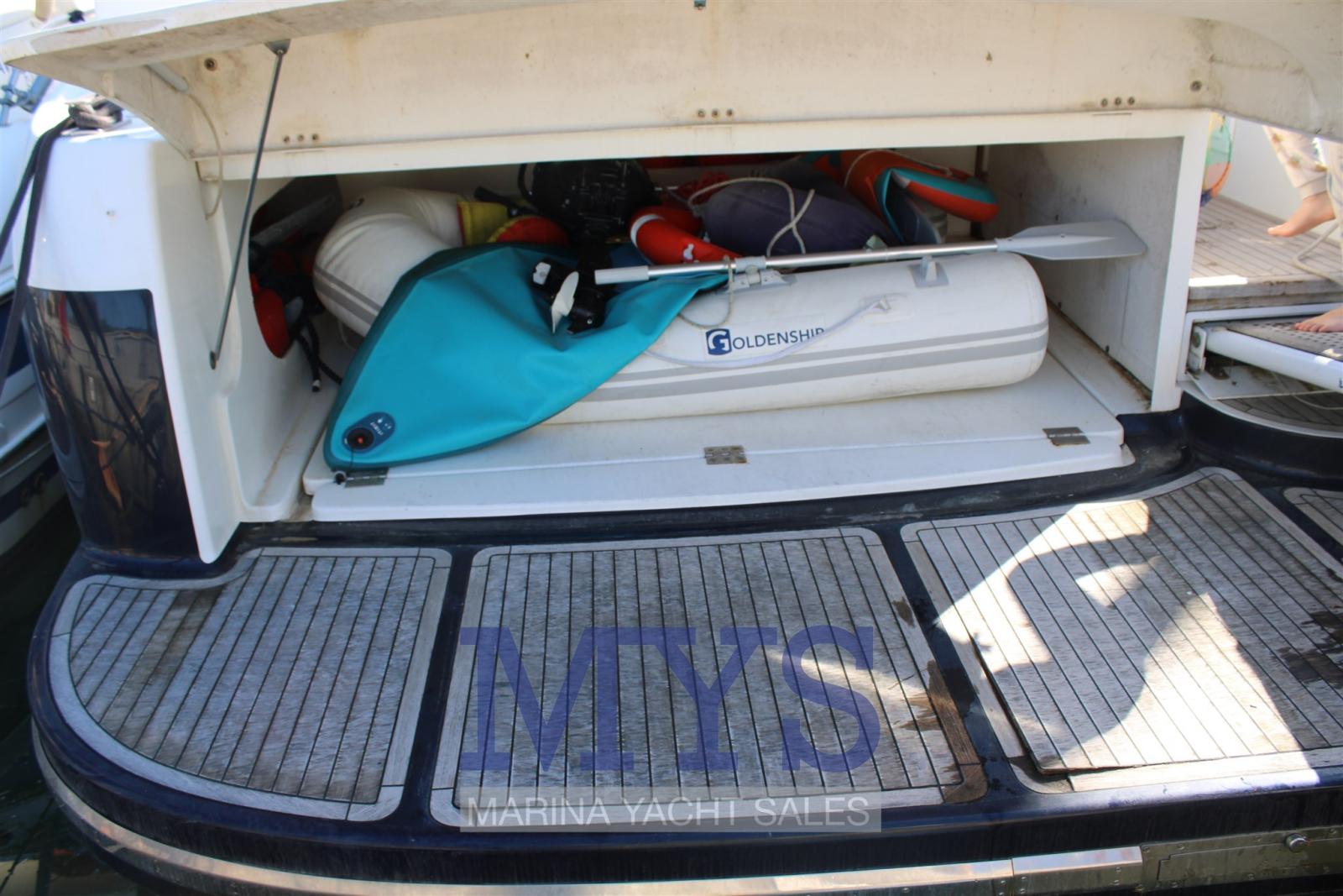 Alarme moteur, Alternateur, Eau sous pression, Douche de cockpit, Phare de poursuite, Flaps hydrauliques, Garage à annexe, Hard top, Extincteur(s) fixe(s), Indicateurs de flaps, Lavabo dans le cockpit, Éclairage de courtoisie, Spots sous-marins, Passerelle, Plateforme arrière, Pompe de cale automatique, Cockpit en teck, Prise de quai, Connexion eau sous pression à quai, Guindeau électrique, Echelle de bain, table de cockpit, Corne.