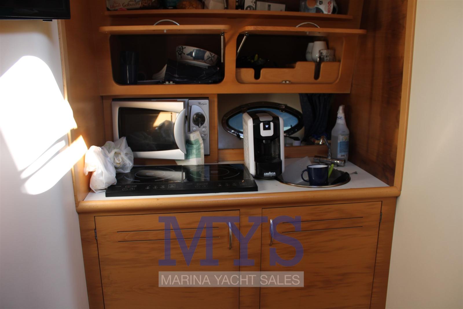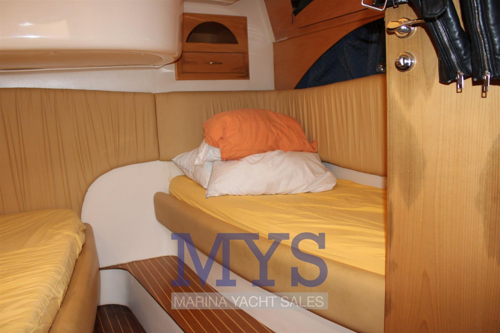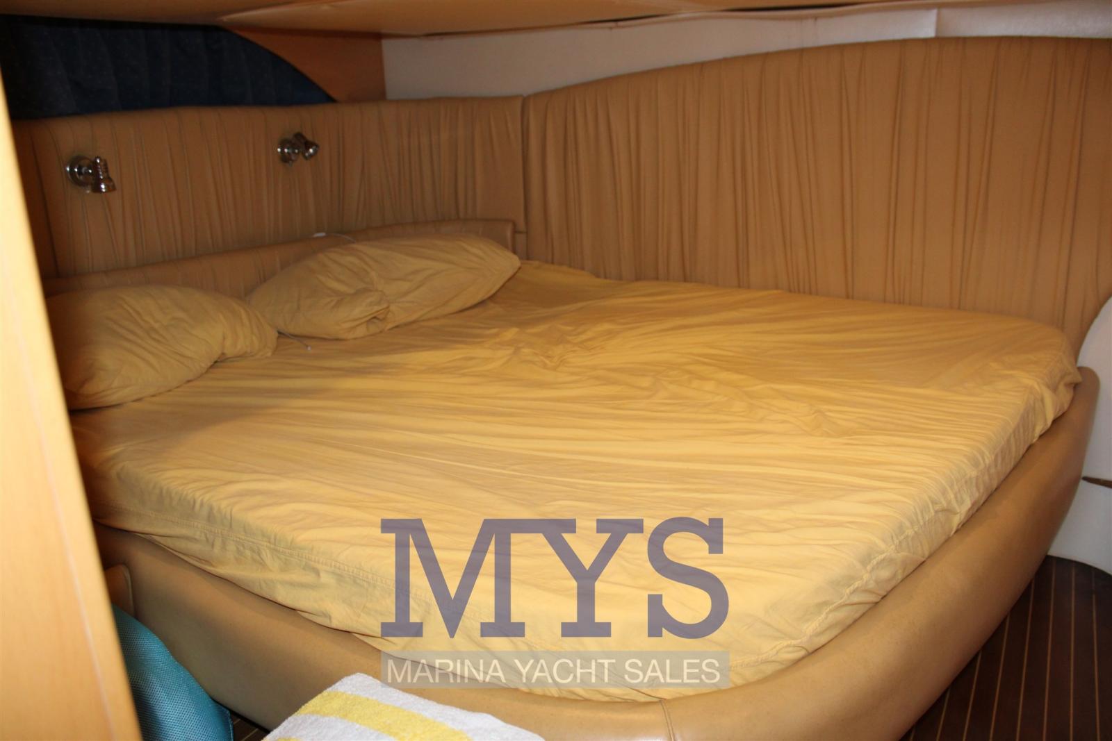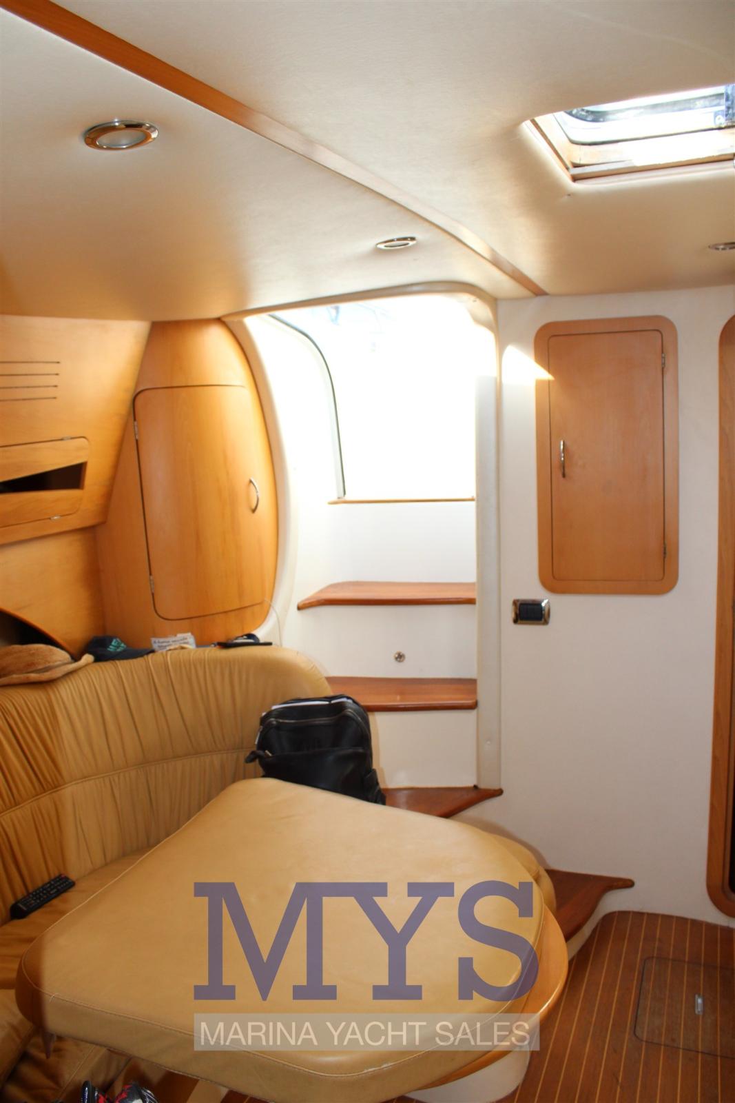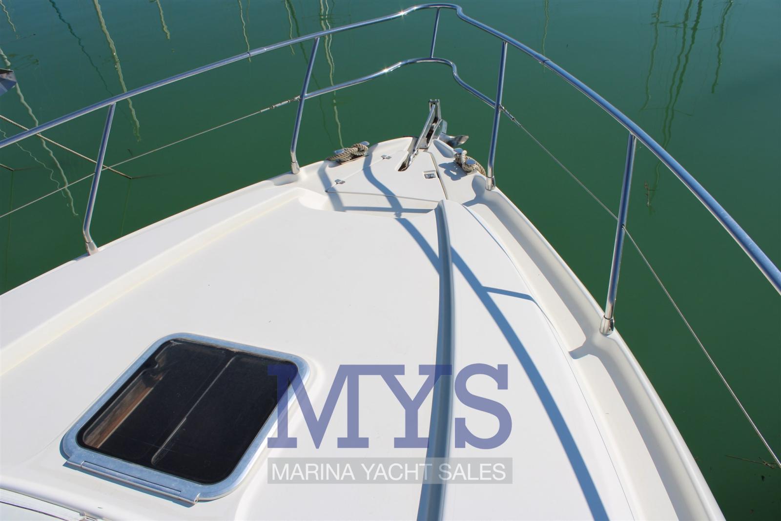 Alarme moteur, Alternateur, Eau sous pression, Douche de cockpit, Phare de poursuite, Flaps hydrauliques, Garage à annexe, Hard top, Extincteur(s) fixe(s), Indicateurs de flaps, Lavabo dans le cockpit, Éclairage de courtoisie, Spots sous-marins, Passerelle, Plateforme arrière, Pompe de cale automatique, Cockpit en teck, Prise de quai, Connexion eau sous pression à quai, Guindeau électrique, Echelle de bain, table de cockpit, Corne.