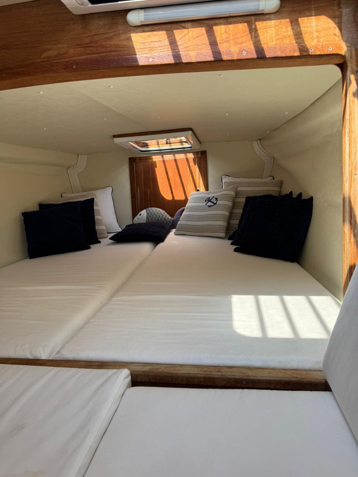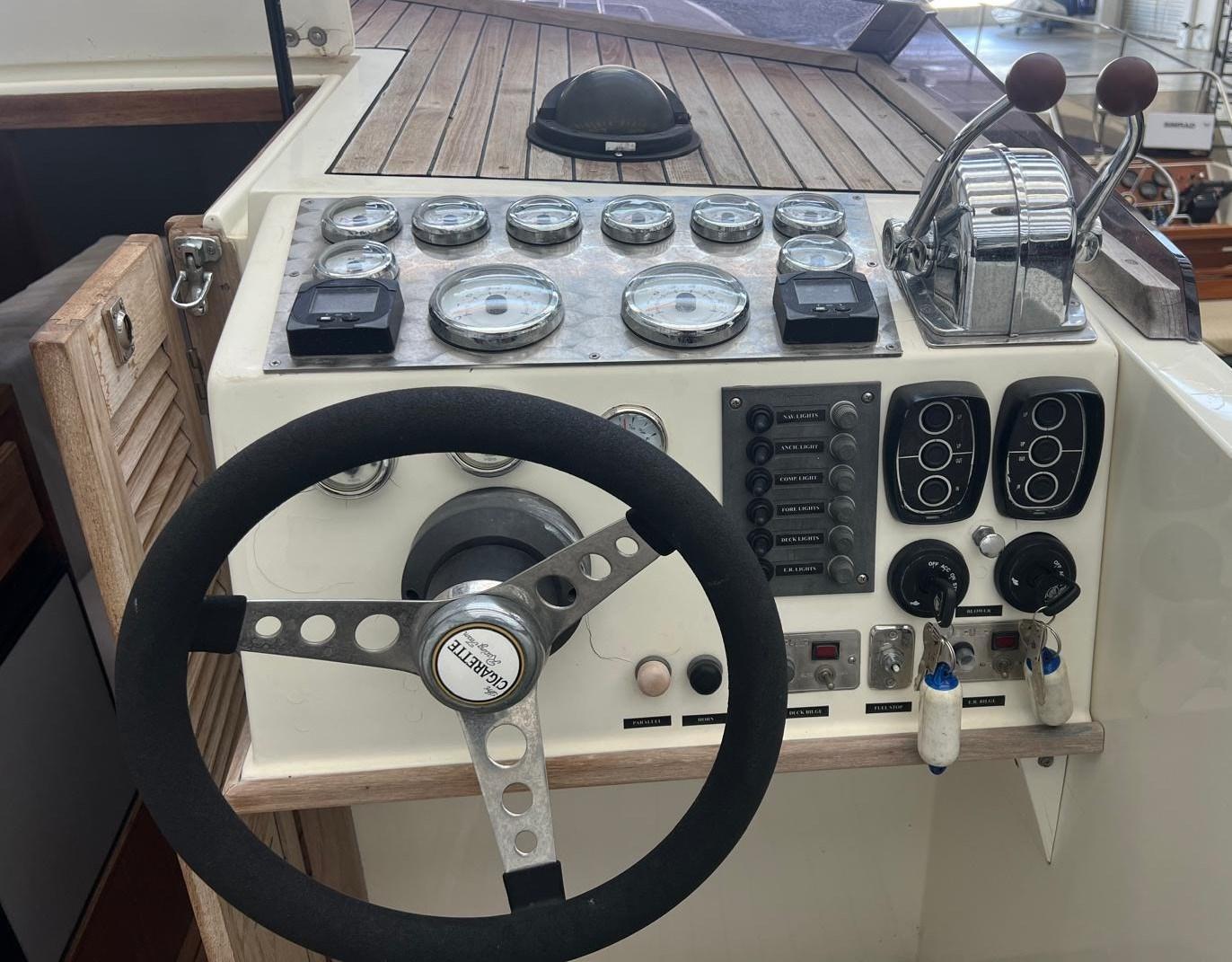 Alarme de pompe de cale, Trim hydraulique, 2 Batteries, Pompe de cale automatique, Cockpit en teck, Guindeau électrique, Guindeau manuel.