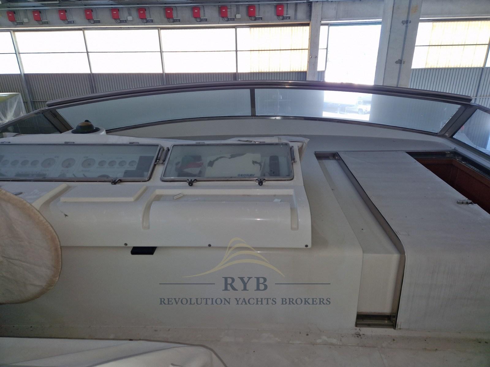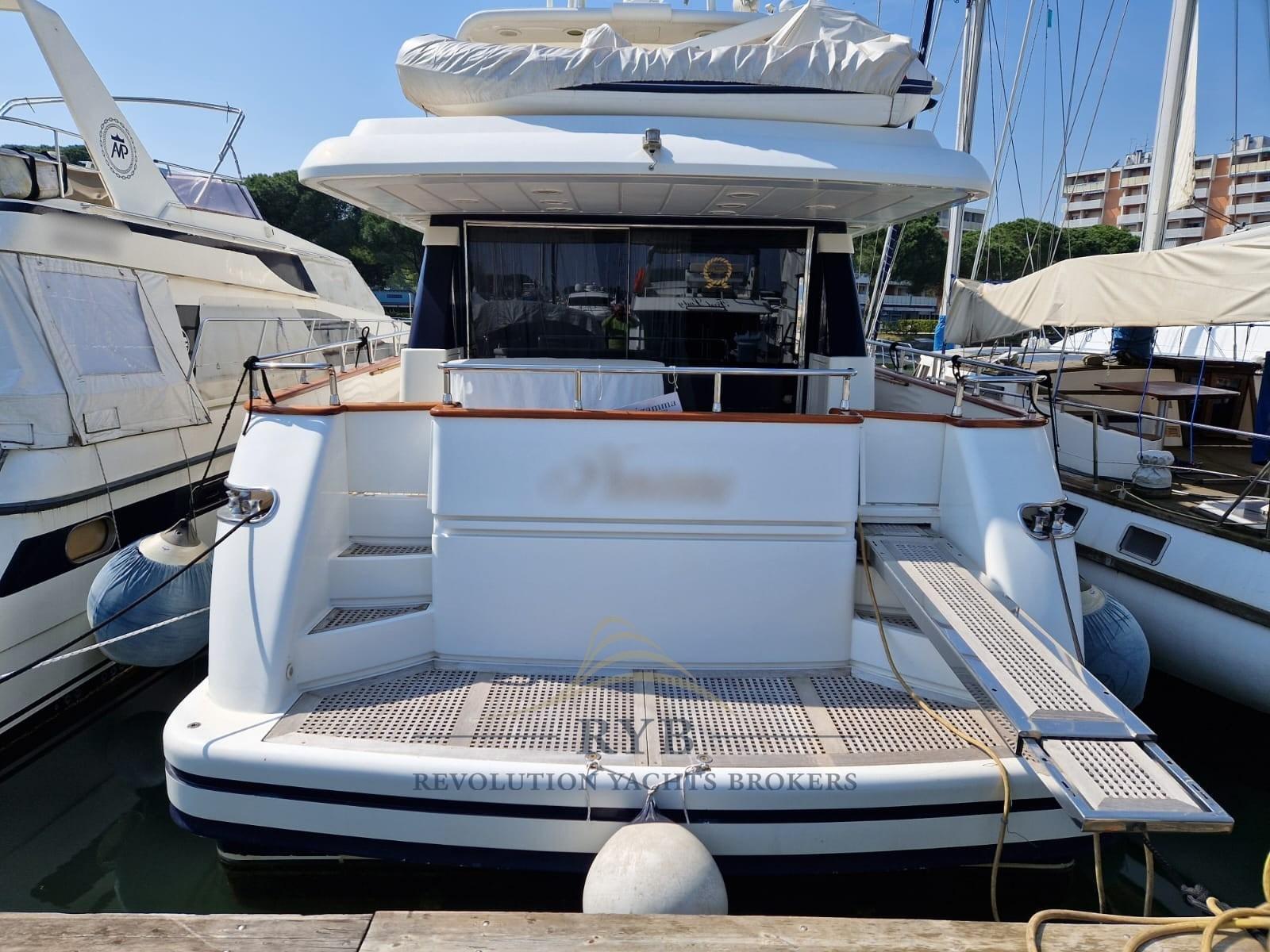 Alarme moteur, Alarme de pompe de cale, Ligne d'arbre de rechange, Eau sous pression, Passavant en teck, Douche de cockpit, Double barre à roue, Phares fixes arrière, Phare de poursuite, Flaps hydrauliques, Grue de flybridge, Extincteur(s) fixe(s), Indicateurs de flaps, Lavage de chaine, Éclairage de courtoisie, Spots sous-marins, Passerelle, Plateforme arrière, Pompe de cale automatique, Cockpit en teck, Prise de quai, Connexion eau sous pression à quai, Onduleur, Rollbar, Guindeau électrique, Echelle de coupée, Echelle de bain, Système de filtration des eaux usées, table de cockpit, Corne, Winch hydraulique, Winch électrique arrière, Winch électrique avant.