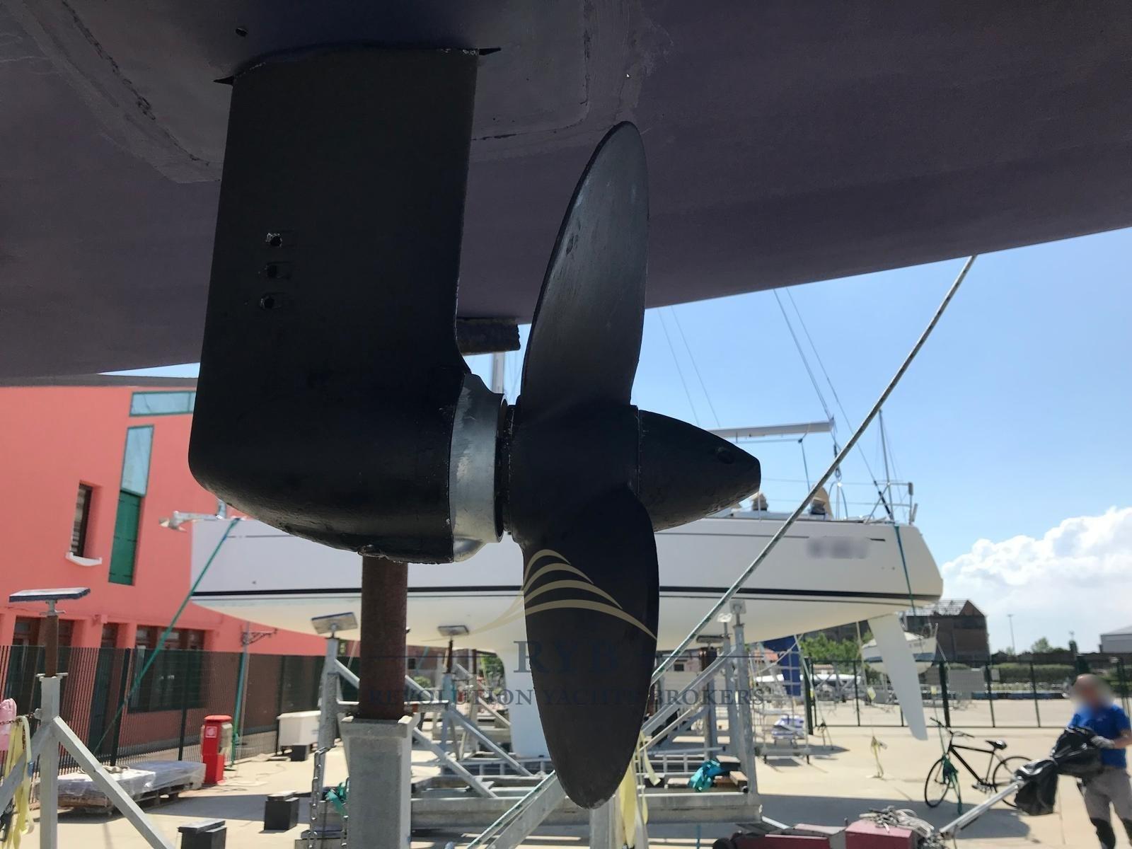 Eau sous pression, Douche de cockpit, Éclairage de courtoisie, Panneau solaire, Passerelle, Pompe de cale automatique, Cockpit en teck, Onduleur, Guindeau électrique, Gréement Rod, Echelle de bain, Windex.