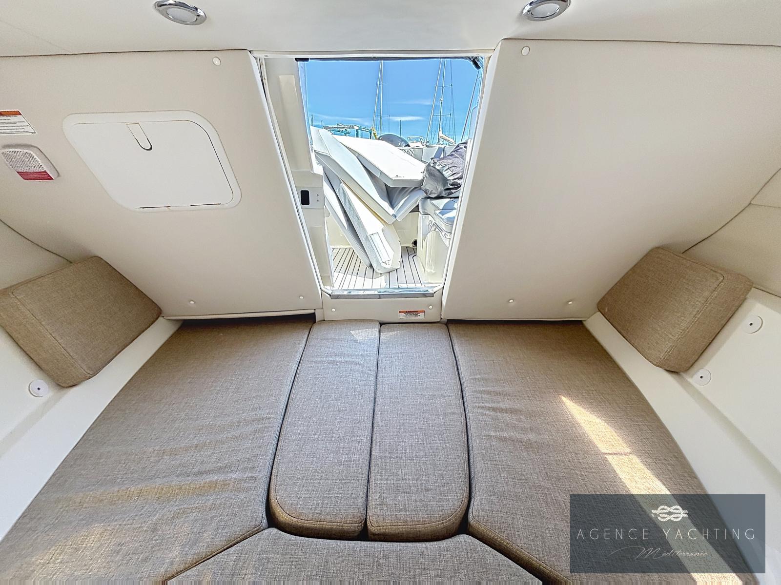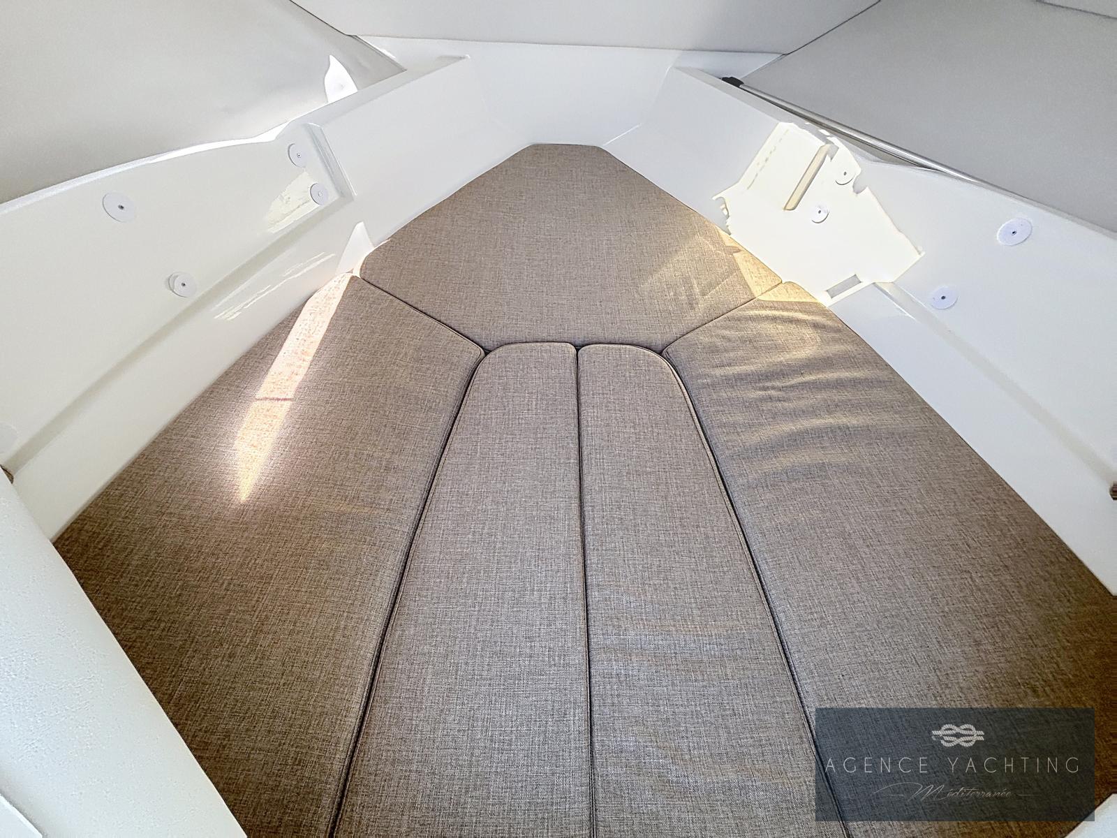 Sa cabine cosy avec couchage pour deux personnes permet également de prolonger les escapades le temps d’une nuit. Côté navigation, sa motorisation hors-bord assure des performances dynamiques, une prise en main facile et une consommation maîtrisée.