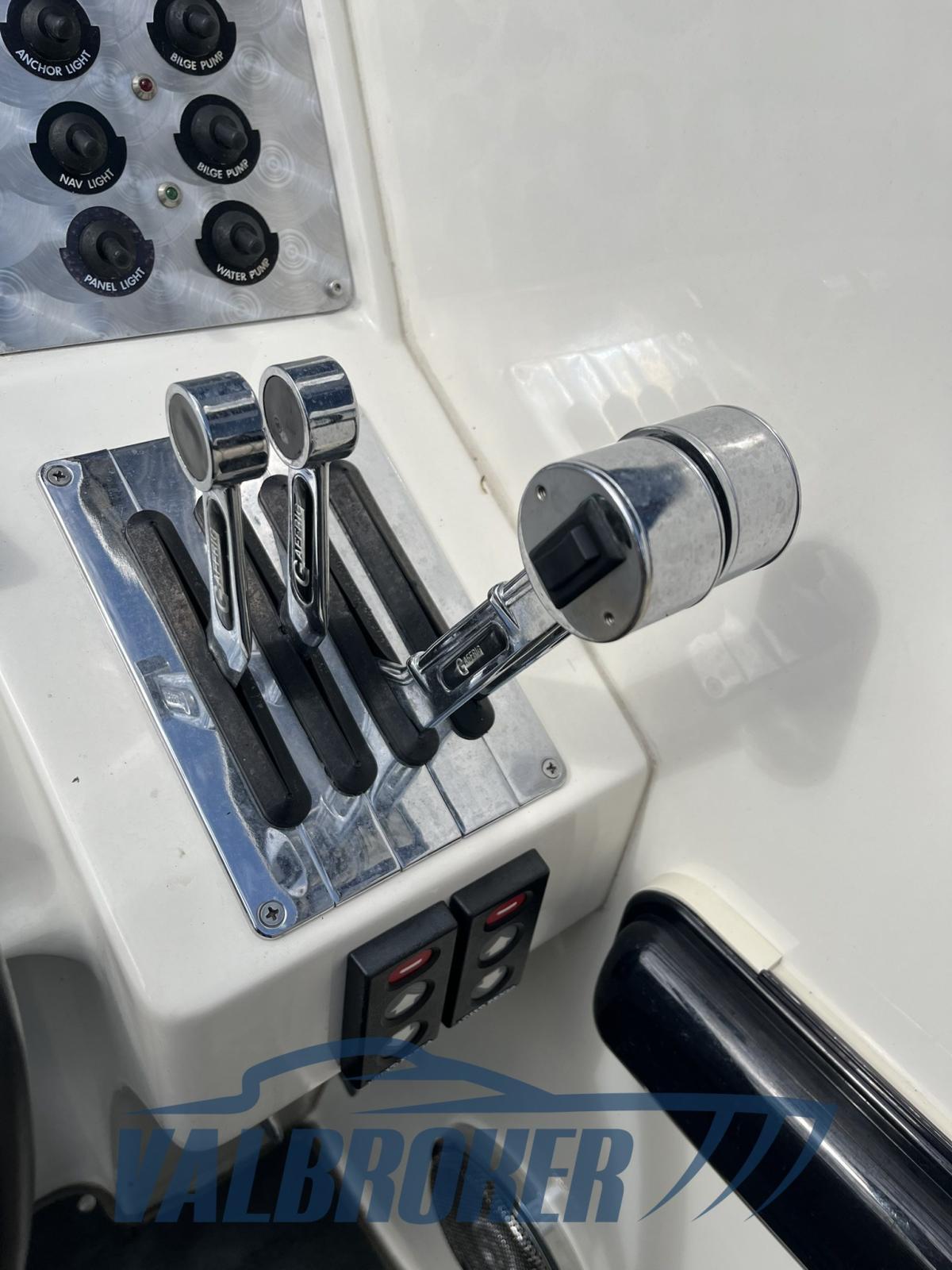 Offshore élégant avec une grande habitabilité. Propulsé par un moteur à essence Volvo Penta 8.0 2x375 avec seulement 300 heures de fonctionnement. Stocké dans un hangar intérieur, utilisé uniquement sur le lac.