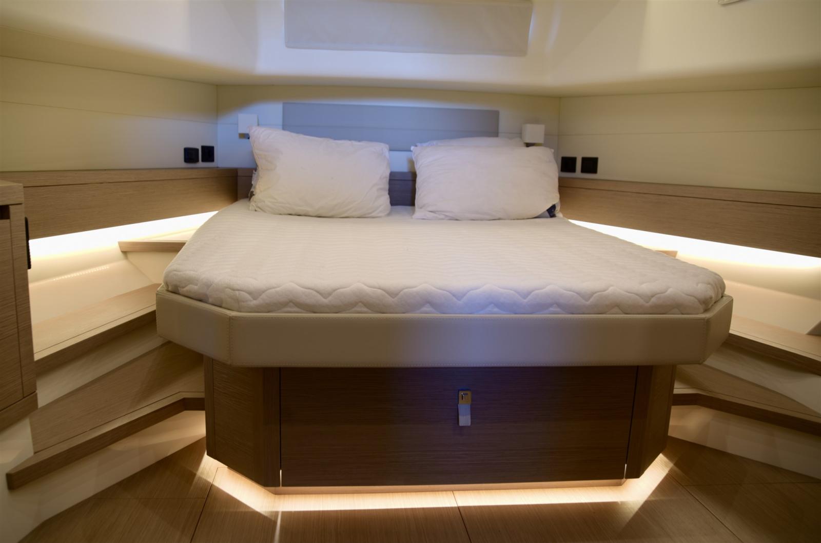 Eau Chaude, Ballon d'eau chaude, Coffre-fort, Air Conditionné, Dessalinisateur (OSMOSEA 100L/H), Indicateur du réservoir de carburant, Jauge de Réservoir d’Eau, Indicateur de pression d’huile, Indicateur de température moteur, Convertisseur (2500), Plancher intérieur en bois, Prises interieures 12v, Prises interieures 220v, 2 Toilettes électriques.