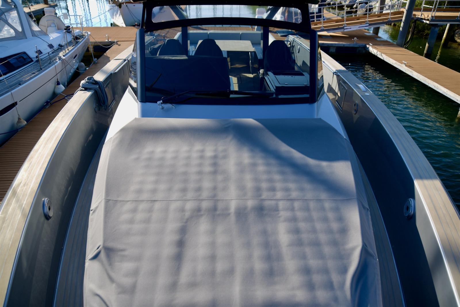 Alarme moteur, Alarme de pompe de cale, Ancre (TREFOIL 15 KG), Auto Dynamic Trim Interceptor (VOLVO), Eau sous pression, Passavant en teck (FLEXITEAK), Couleur spéciale (SILVER METAL), Douche de cockpit, Extincteur(s) fixe(s), Lavabo dans le cockpit, 8 Défenses, Passerelle (IDRAULICA), Plateforme arrière (SISTEMA SALISCENDI), Pont en teck (FLEXITEAK), Prise de quai, Guindeau électrique (CON VIDEOCAMERA), Echelle de bain, table de cockpit (ABBATTIBILE ELETTRICAMENTE), T-Top.