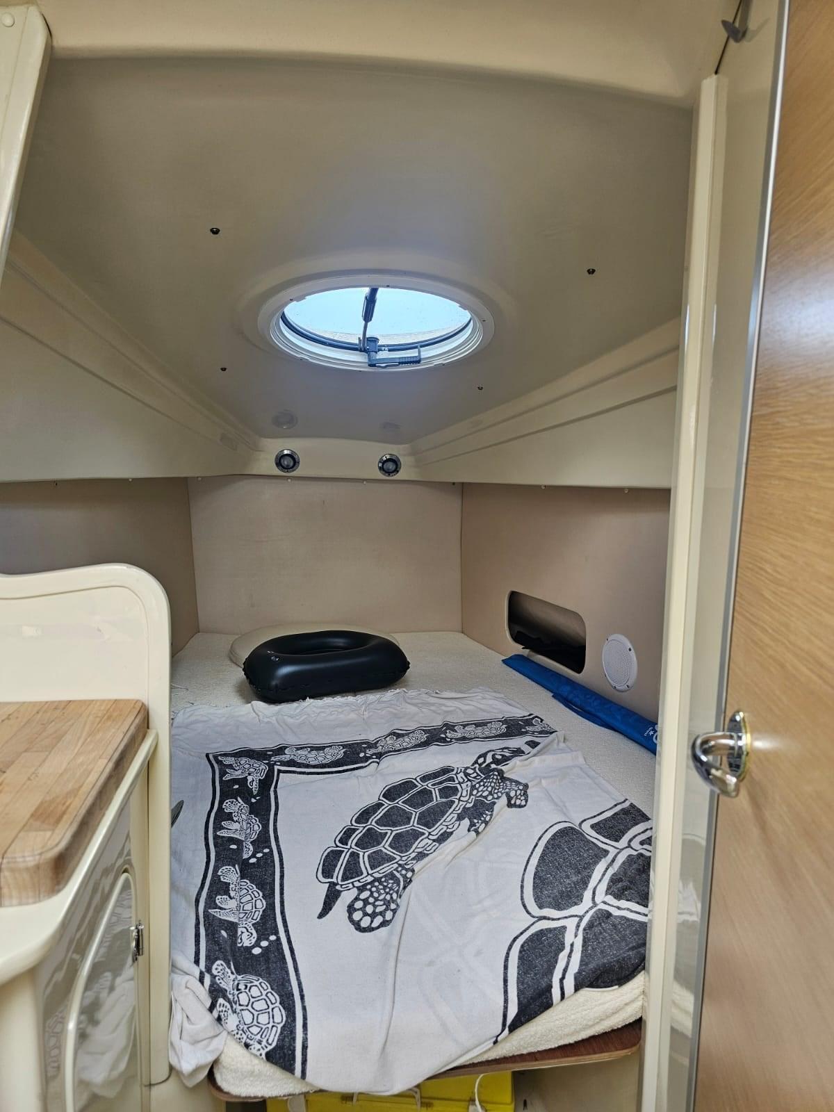 Il offre une double cabine, une salle de bain séparée, de grands ponts ouvriers à l’avant et à l’arrière