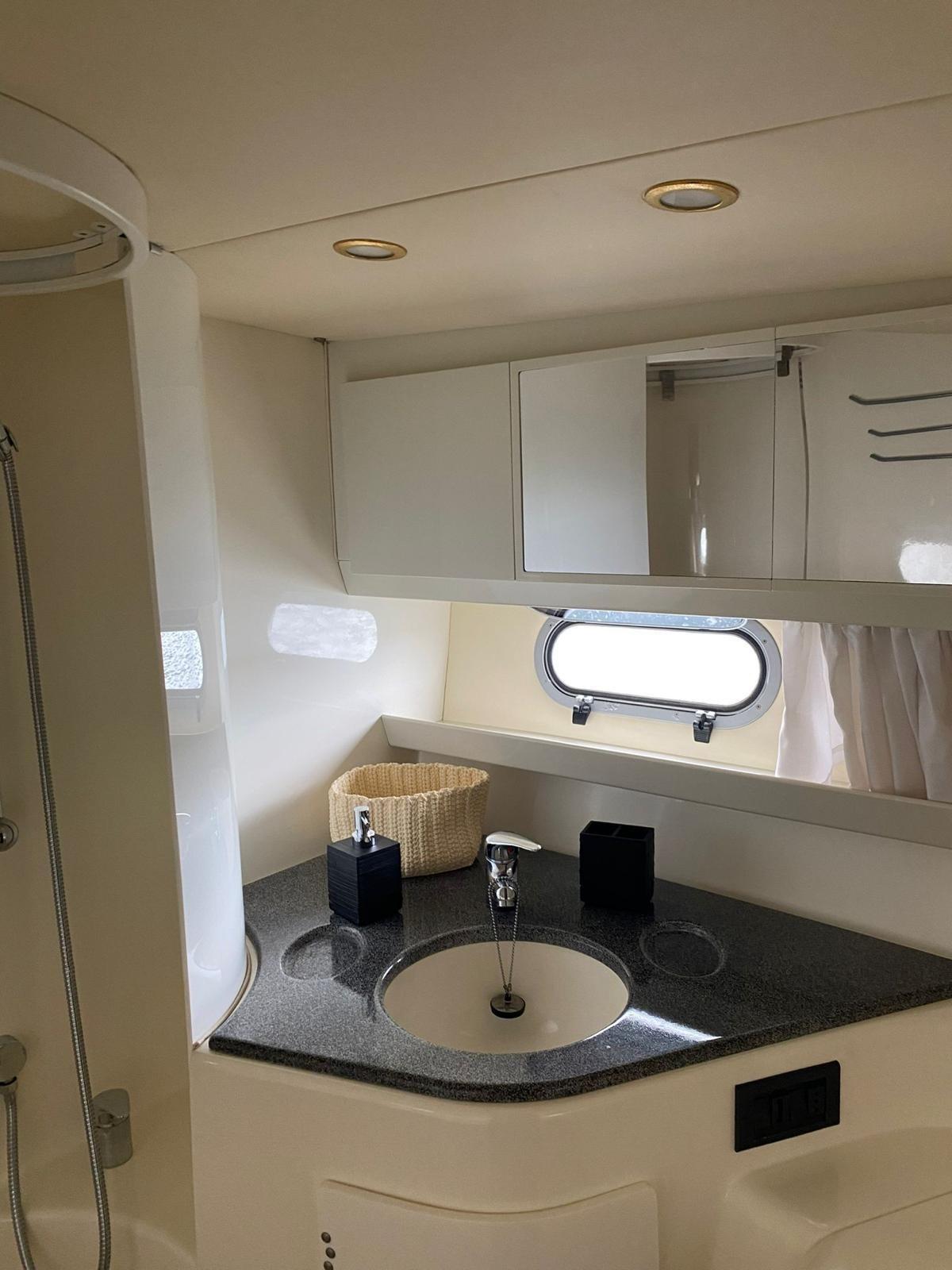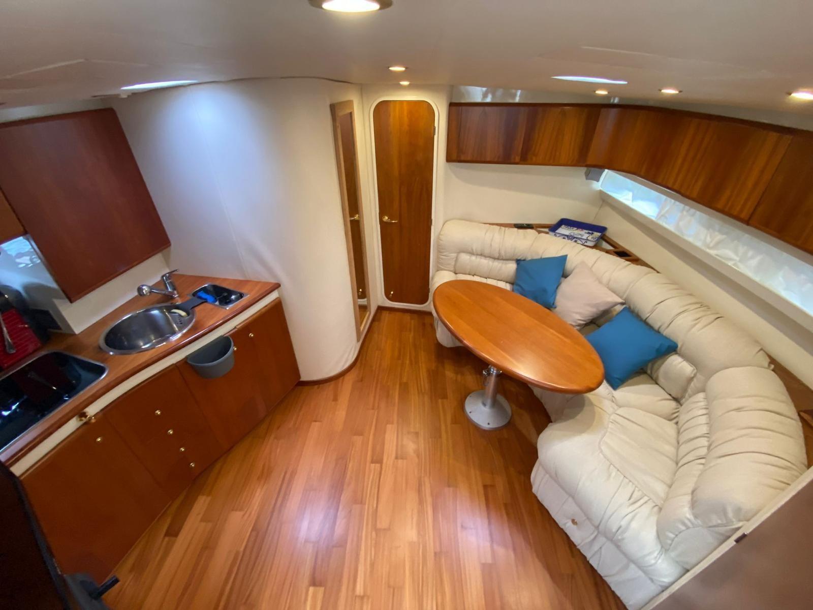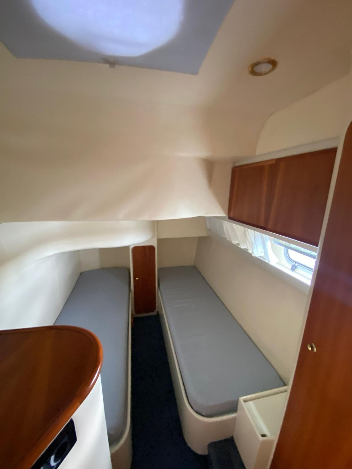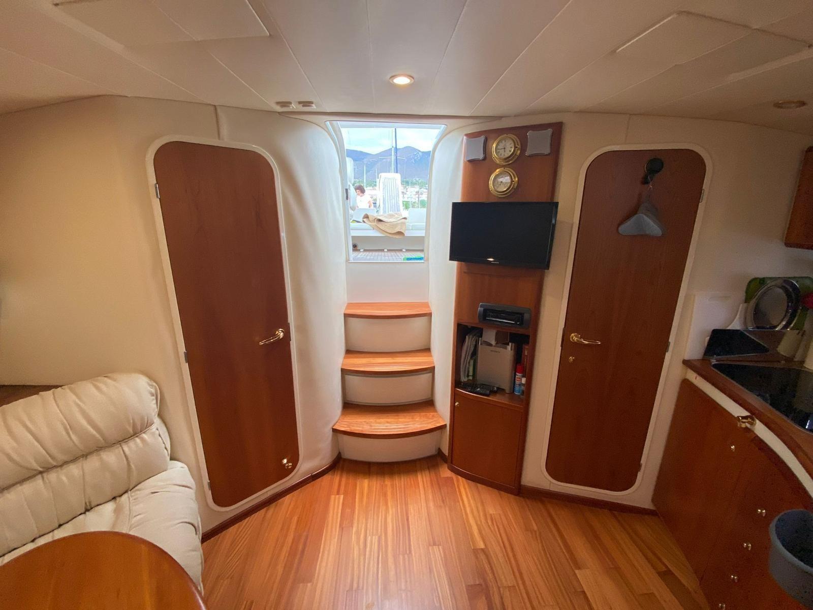 Échelle de natation, table de cockpit (électrique), boussole, compteur kilométrique, sondeuse GPS, traceur (Garmin), 2 x climatisation, chaudière, 2 x toilettes marines électriques, stéréo (système Bose), radio VHF.