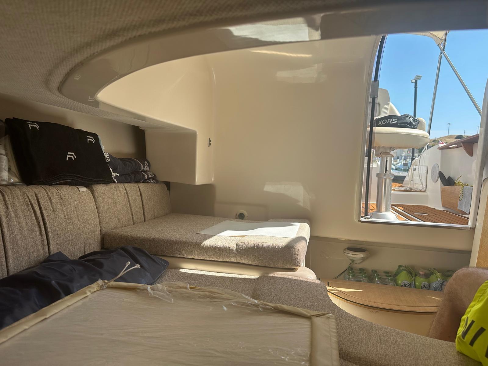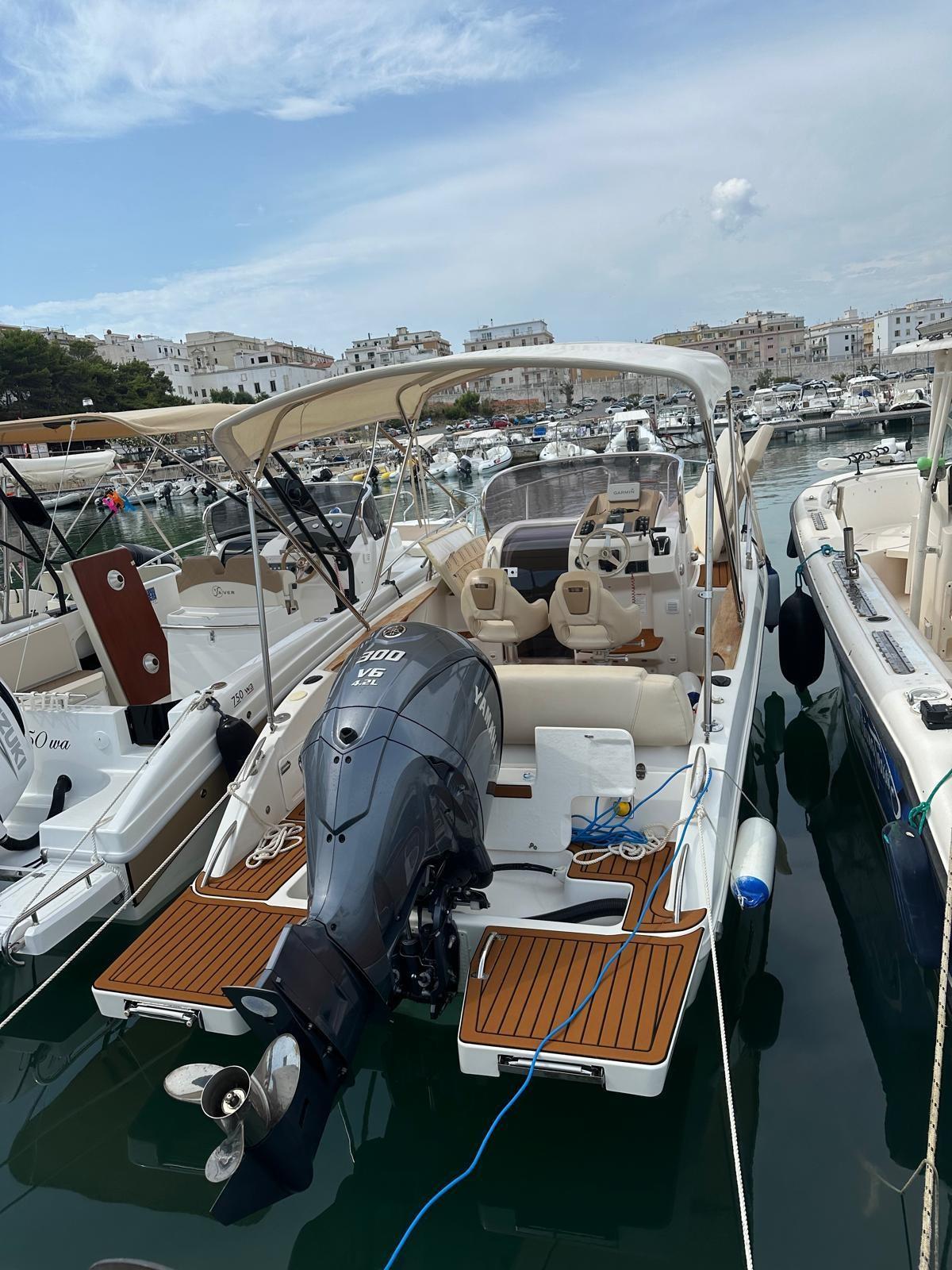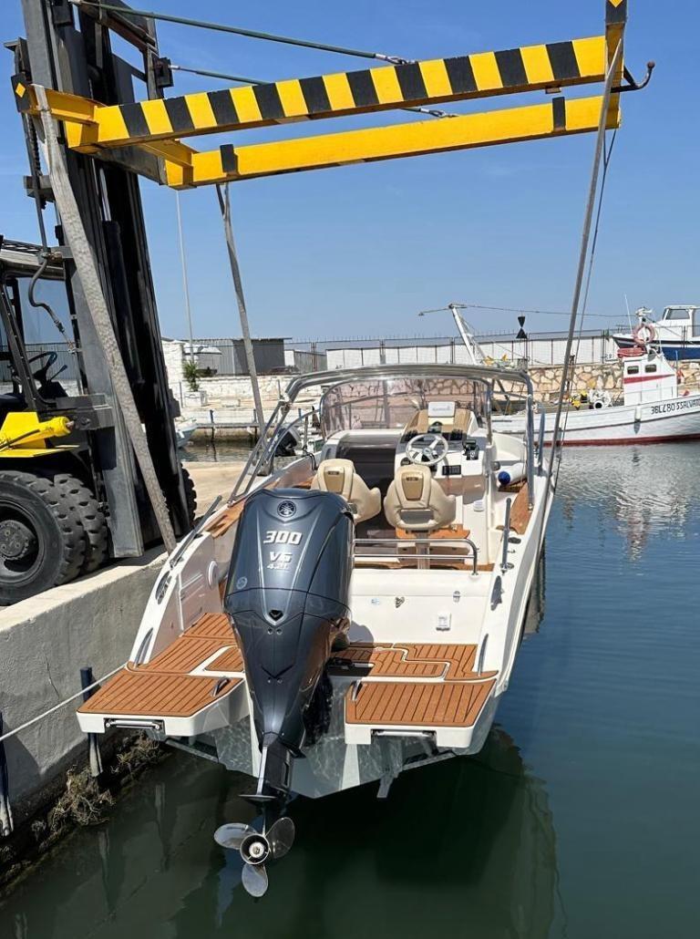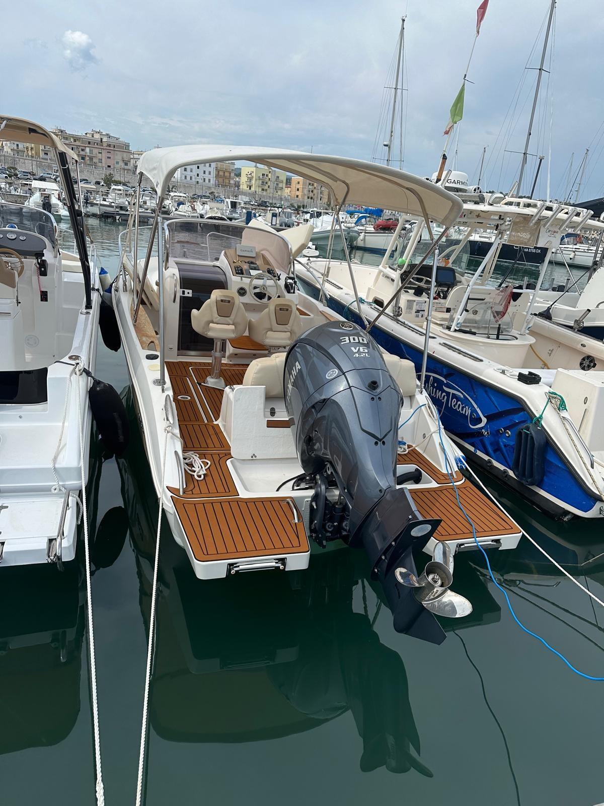 Alarme moteur, Eau sous pression, 2 Batteries, Douche de cockpit, Flaps hydrauliques, 2 Plateforme arrière (maggiorate), Cockpit en teck (Seadeck), Prise de quai, Guindeau électrique, 2 Echelle de bain, table de cockpit.