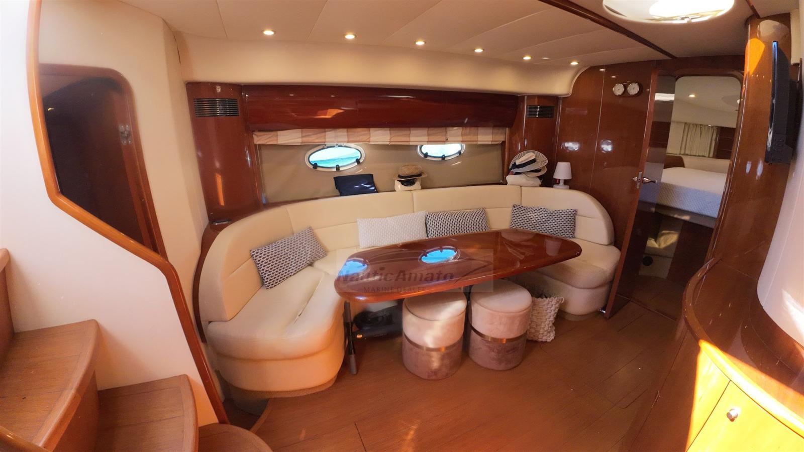 Alarme moteur, Alarme de pompe de cale, Eau sous pression, Câble d’alimentation à quai, Douche de cockpit, Flaps hydrauliques, Garage à annexe, Hard top, Lavabo dans le cockpit, Éclairage de courtoisie, Passerelle, Pompe de cale automatique, Cockpit en teck, Prise de quai, Guindeau électrique, Echelle de bain, table de cockpit, Table pliante de salon, Annexe, Corne.