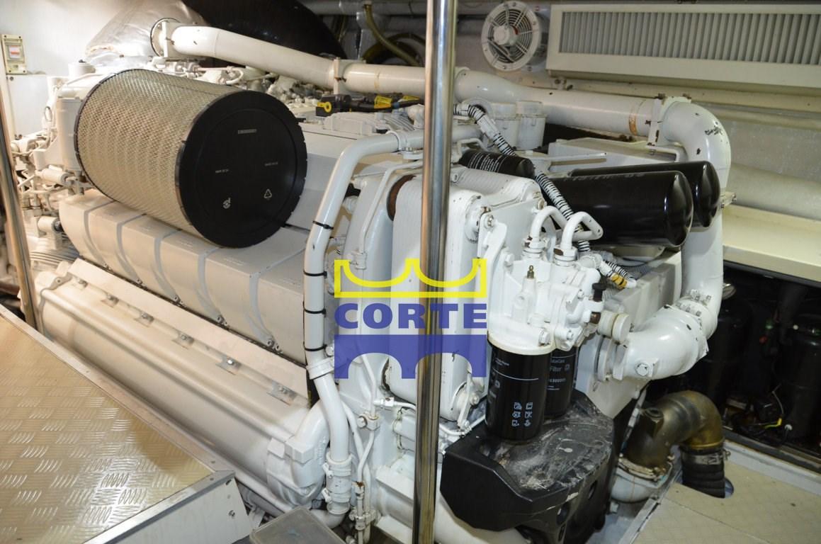 Troisième poste de pilotage dans le cockpit, système de gestion et de surveillance intégré Système électrique « gi8 » avec écran tactile, Cabine équipage en option : double supplémentaire au lieu d’un espace de rangement, 2 séparateurs de fumée pour générateur, 2 paires de lumières supplémentaires pour les passerelles latérales, 2 lumières sous-marines au xénon, veilleuses pour l’escalier d’accès à la cabine, parois de douche dans la salle de bain du propriétaire avec mosaïque, stores romains doubles dans la cabine du propriétaire, stores romains doubles dans le salon et la salle à manger, prise de connecteur avec télécommande de série pour bossoir