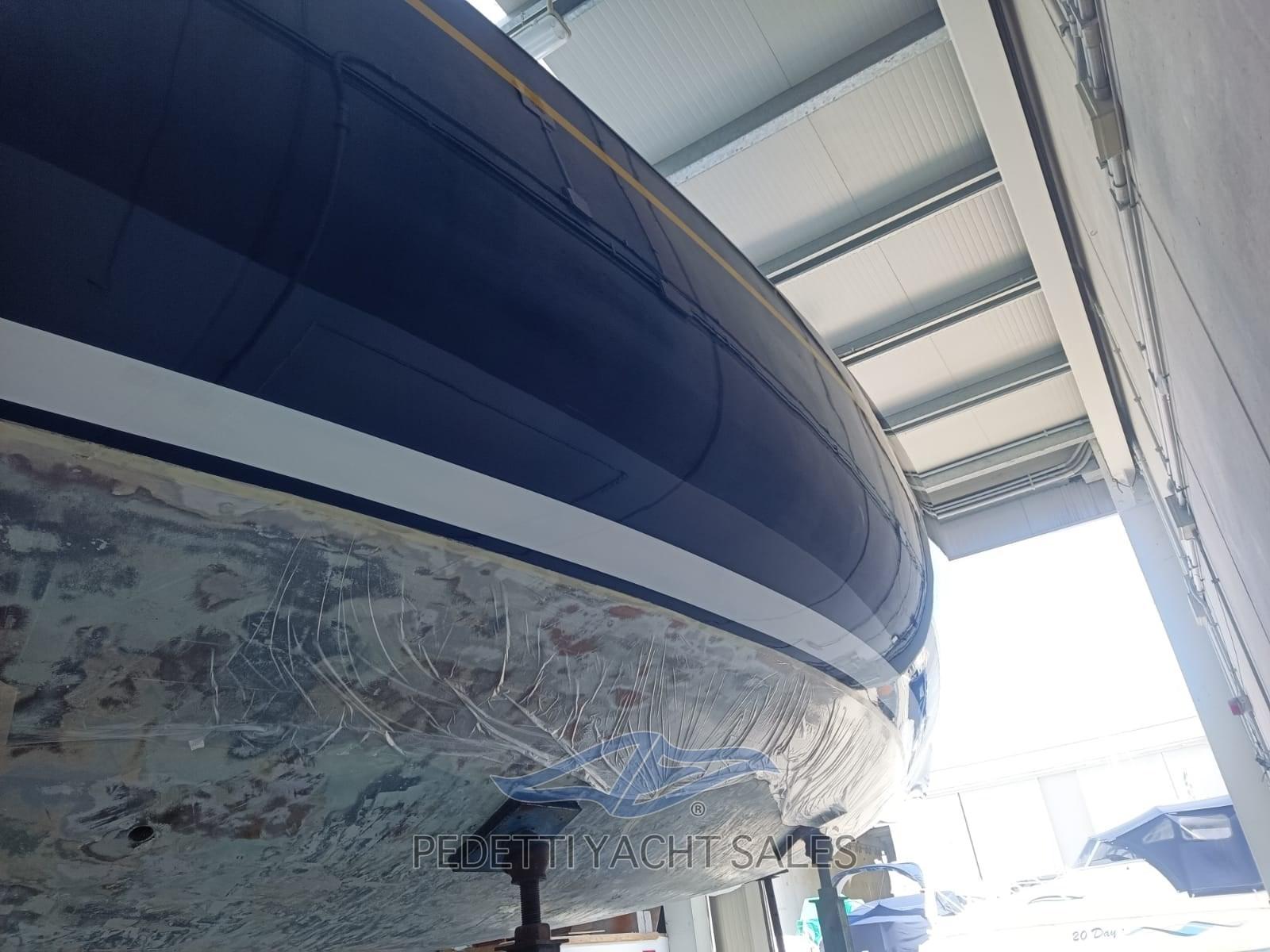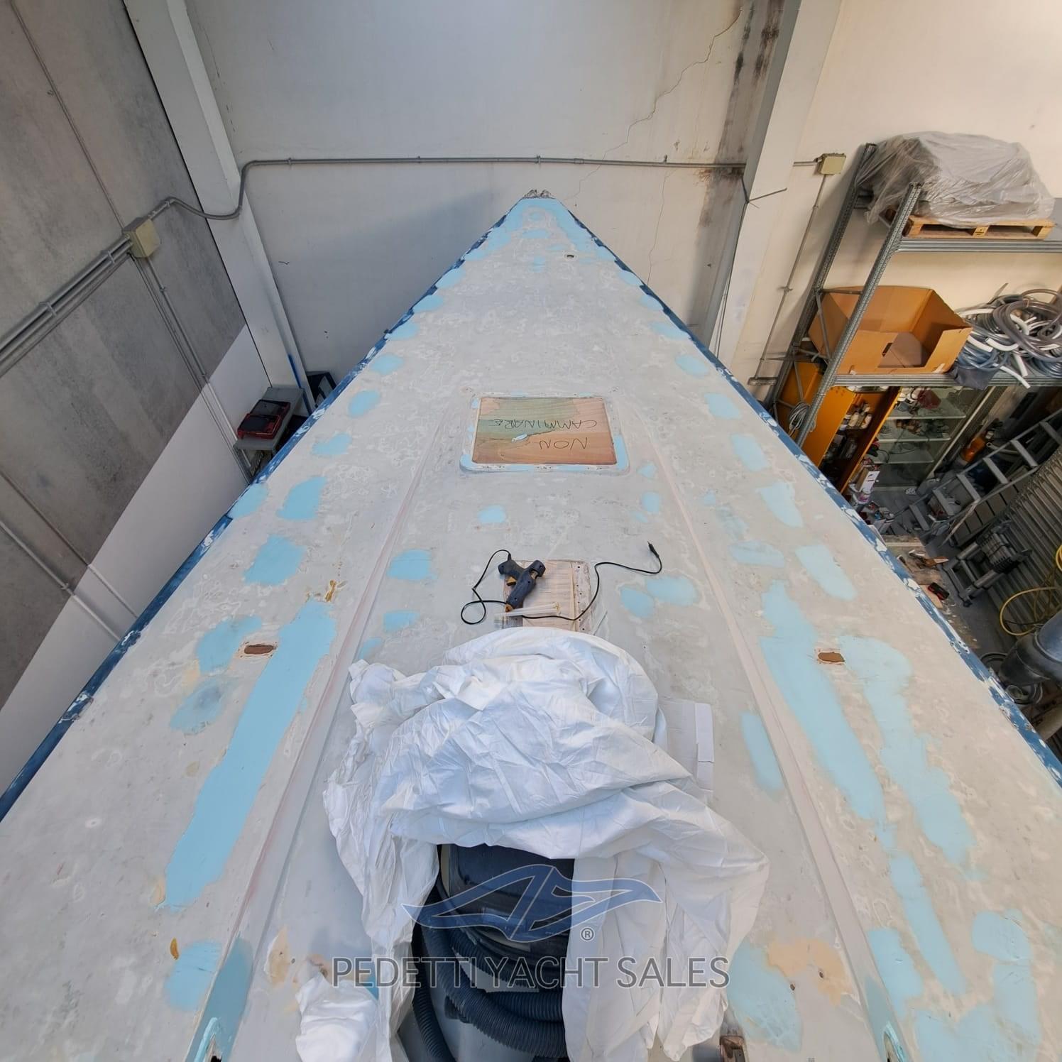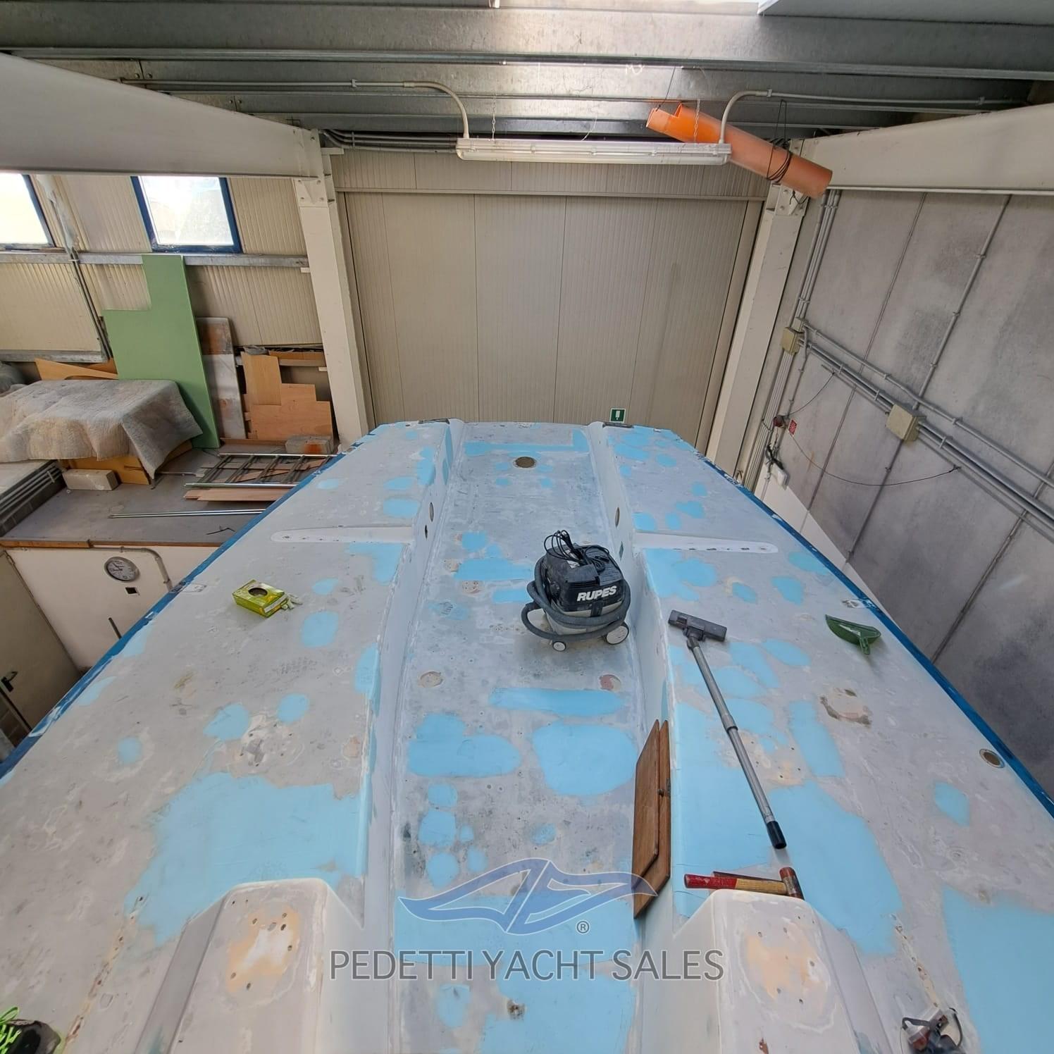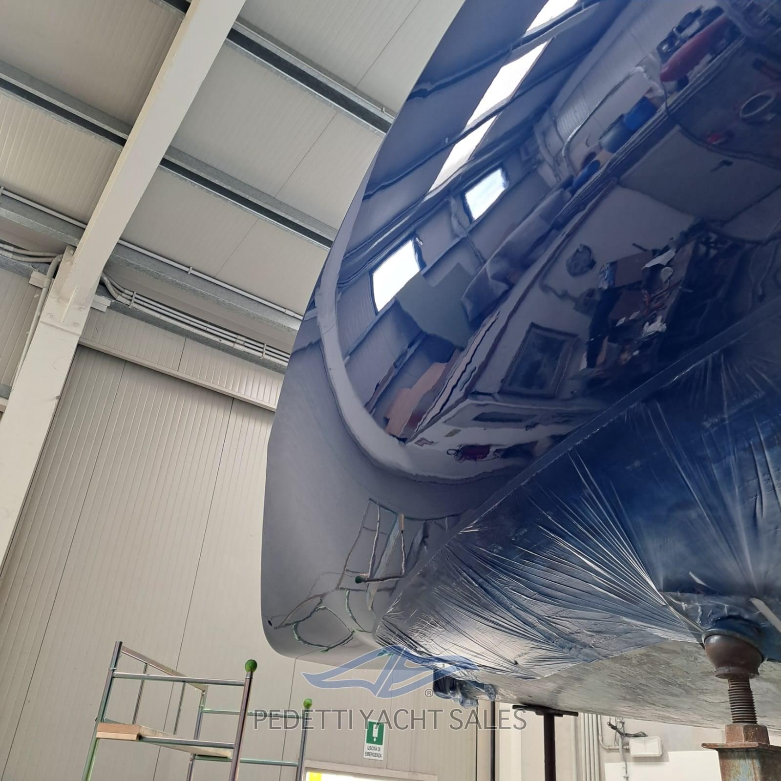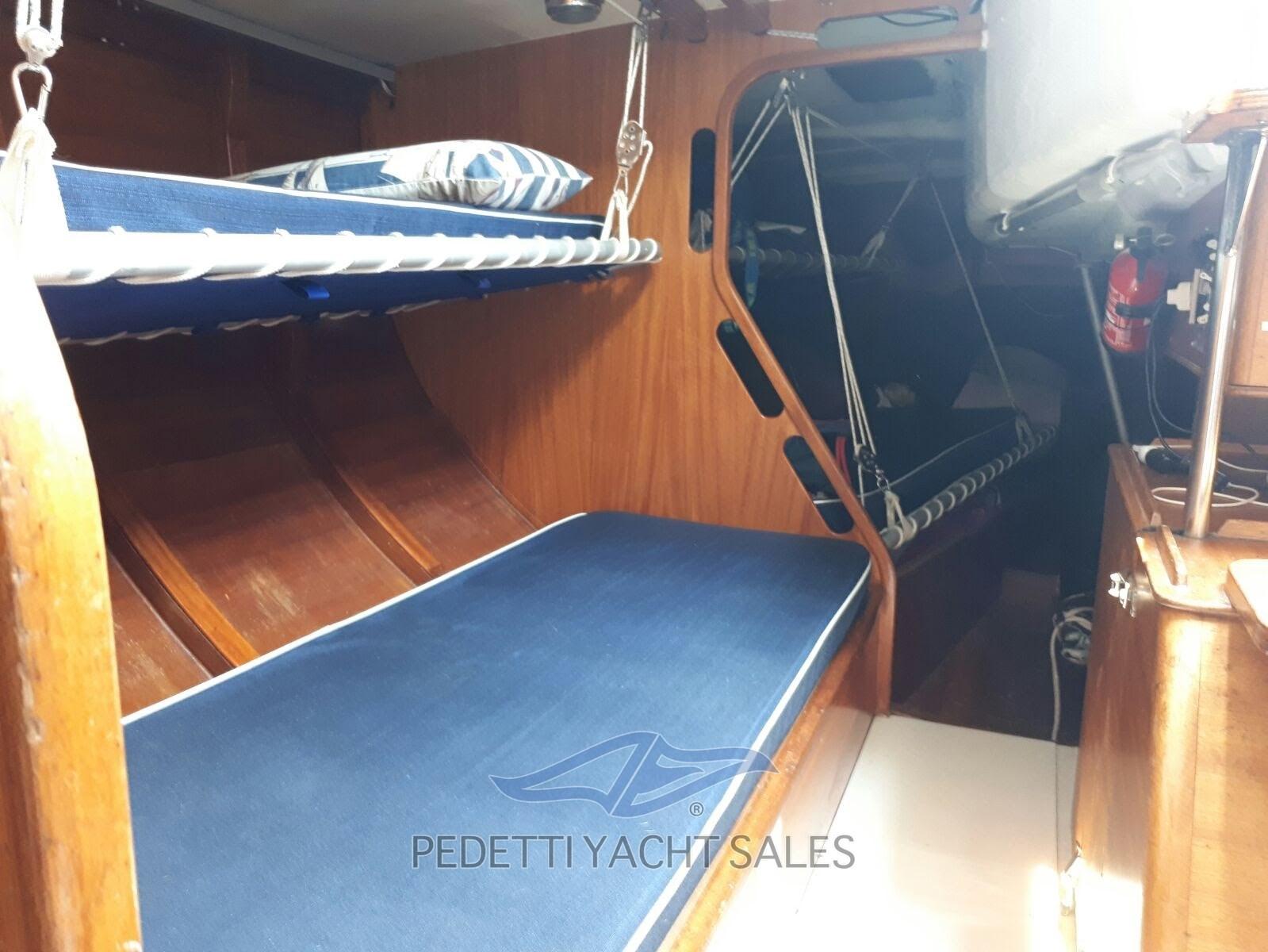 tiroirs, réfrigérateur portable, table à cartes fixe traditionnelle avec siège, n.8 couchettes basculantes avec matelas, intérieur de la coque avec