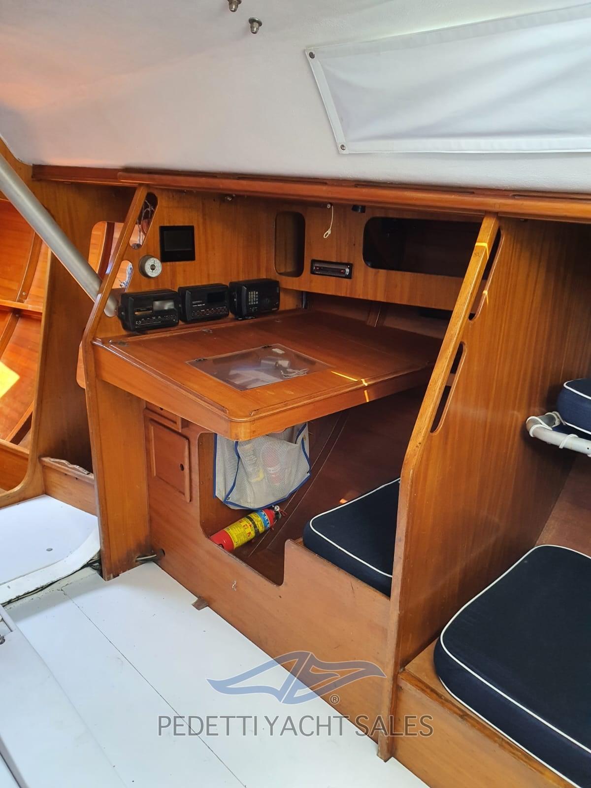 Bois apparent fini, magnifique, bateau de l’année 1985. Annexe avec rames, table de cockpit.