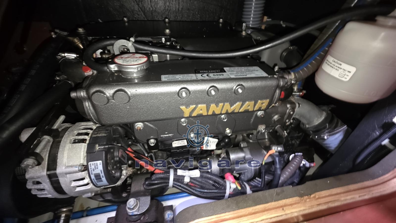 Alarme moteur, Eau sous pression, 3 Batteries (1x110 2x115), Douche de cockpit, Double barre à roue, Éclairage de courtoisie, Moteur hors-bord pour annexe (HONDA 2.3), Défenses, Plateforme arrière, Pompe de cale automatique, Prise de quai, Guindeau électrique, Gréement monotoron, Echelle de bain, table de cockpit, Annexe (QUICKSILVER), Corne, 3 Winch (HARKEN CON SELFTAILING).